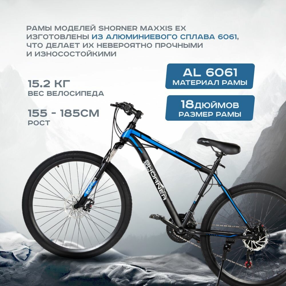 Велосипед горный взрослый мужской и женский Shorner Maxxis EX 27.5 синий - черный информация:
