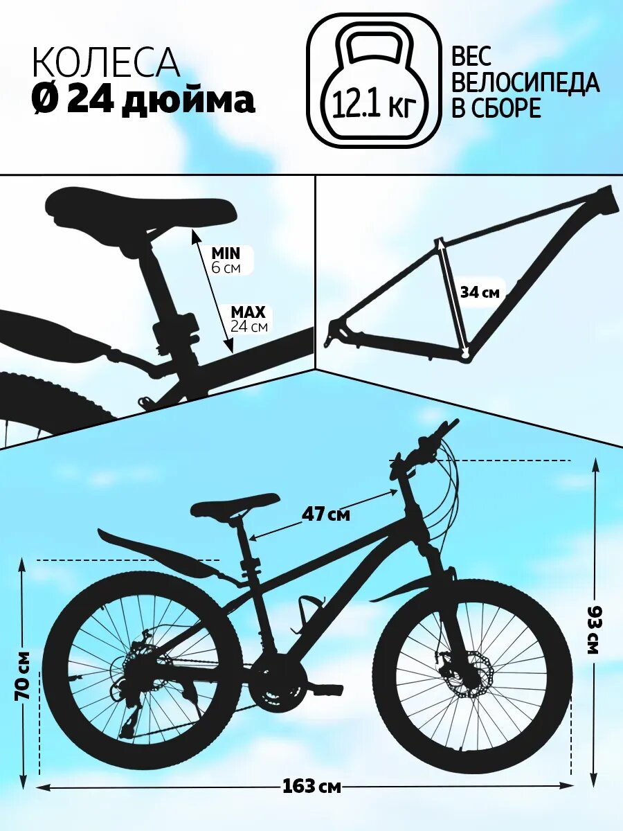 Горный велосипед SUN 21s 24", сталь, 21 скоростная, внутренняя проводка тросов 17 919 ₽