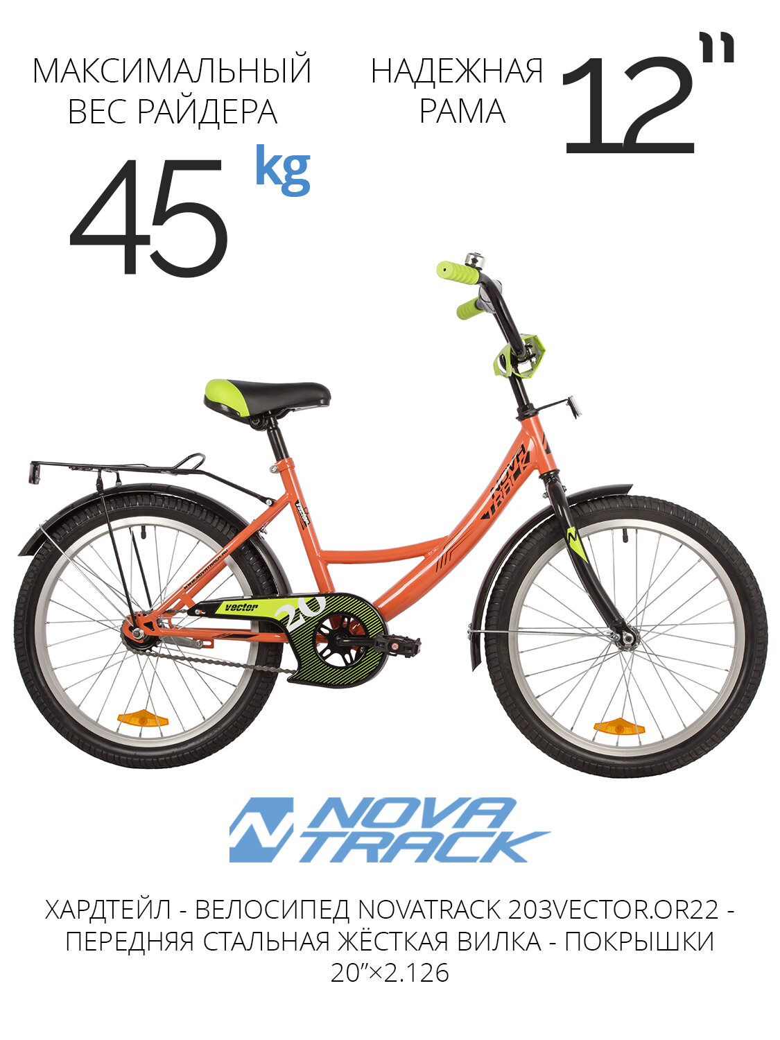 Велосипед Novatrack VECTOR, 20", с багажником, сталь, унисекс информация: