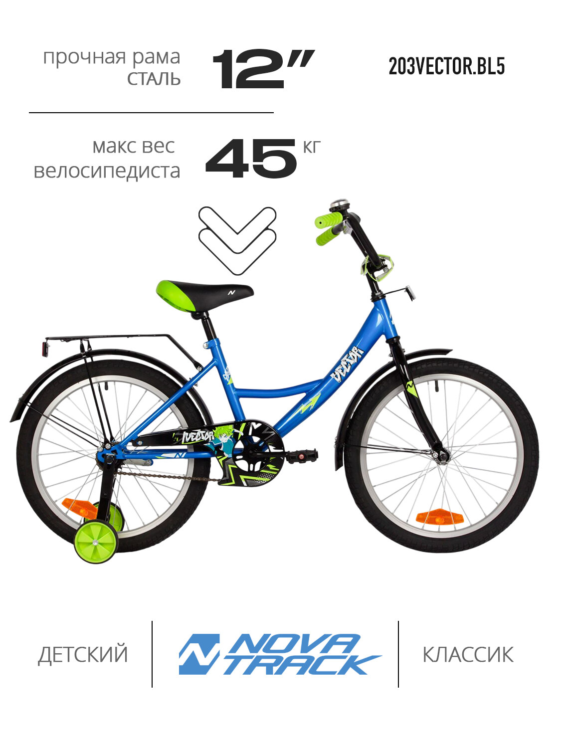 Отзывы на Велосипед NOVATRACK 20", Vector, синий, тормоз нож, крылья цвет, багажник хром. #077359