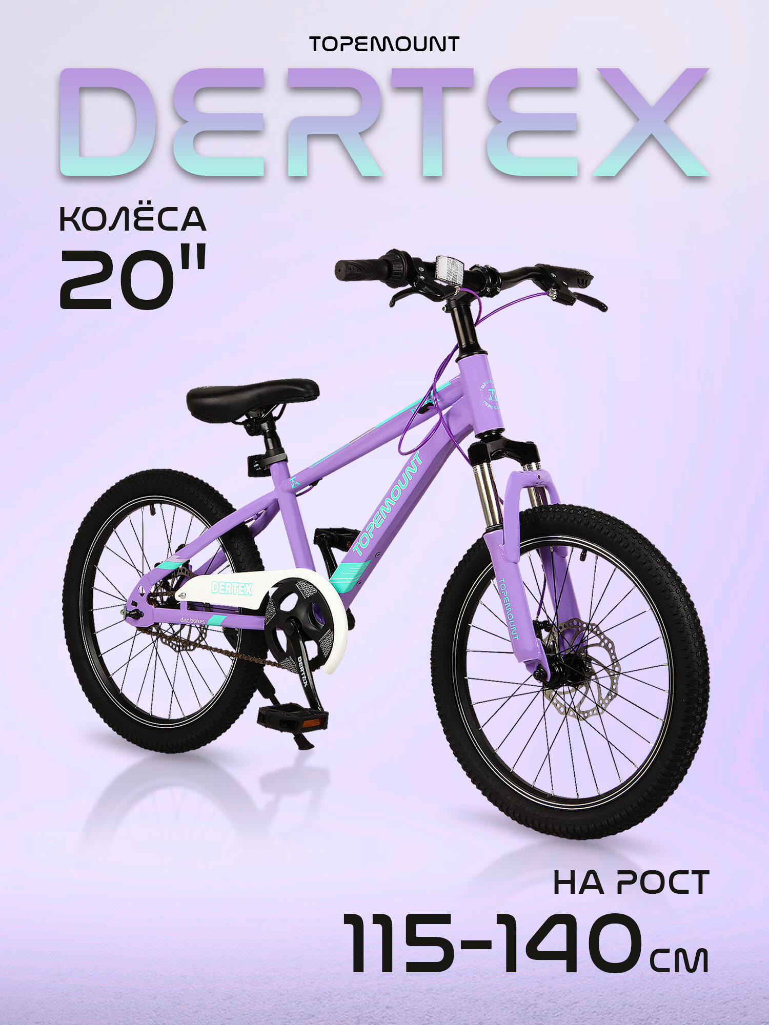 Велосипед детский TOPEMOUNT "Dertex" 20, алюминиевая рама 9", ручной тормоз, фиолетовый информация: