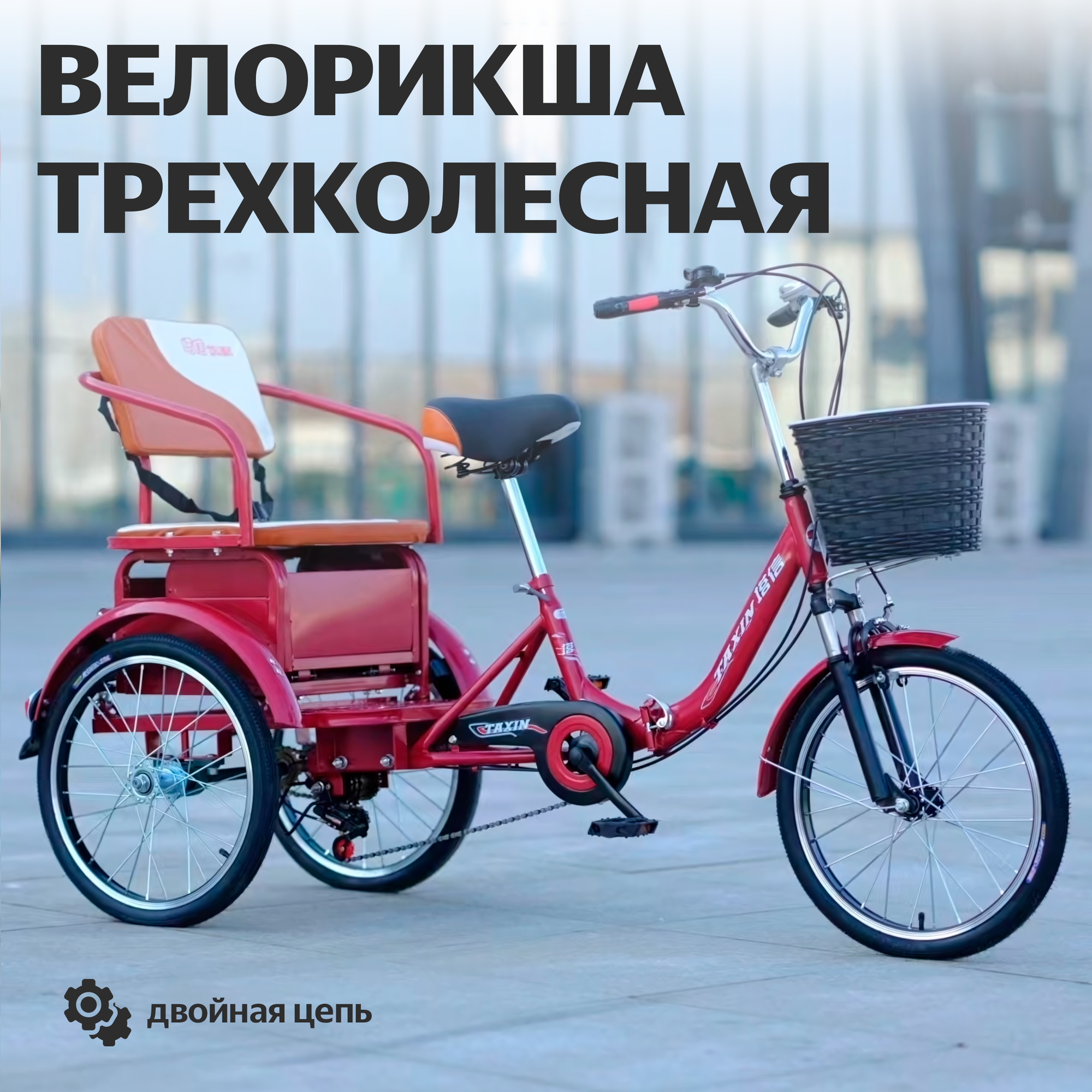 Трехколесная велорикша 801, складная, масляный тормоз с регулируемой скоростью и двойной цепью, красный 20 189 ₽