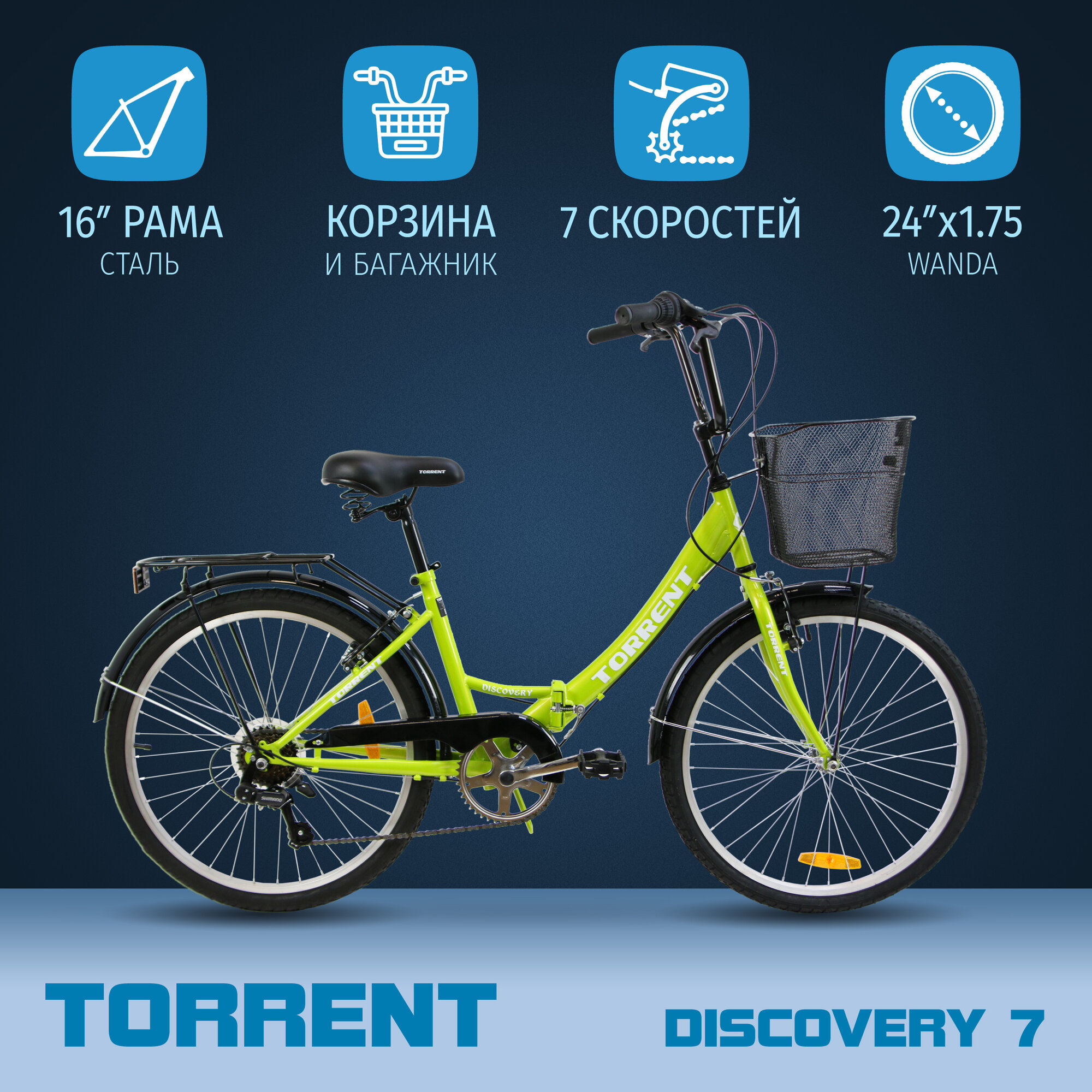 Велосипед TORRENT Discovery-7 (рама сталь 16" складная, 7 скоростей, SHIMANO, колеса 24д. корзина) информация: