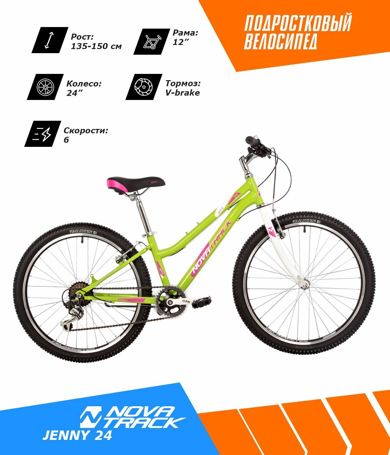 Отзывы на Велосипед NOVATRACK 24" JENNY сталь 12', салатовый, 6 скор. TY21/TS-38/SG-6S, V-brake