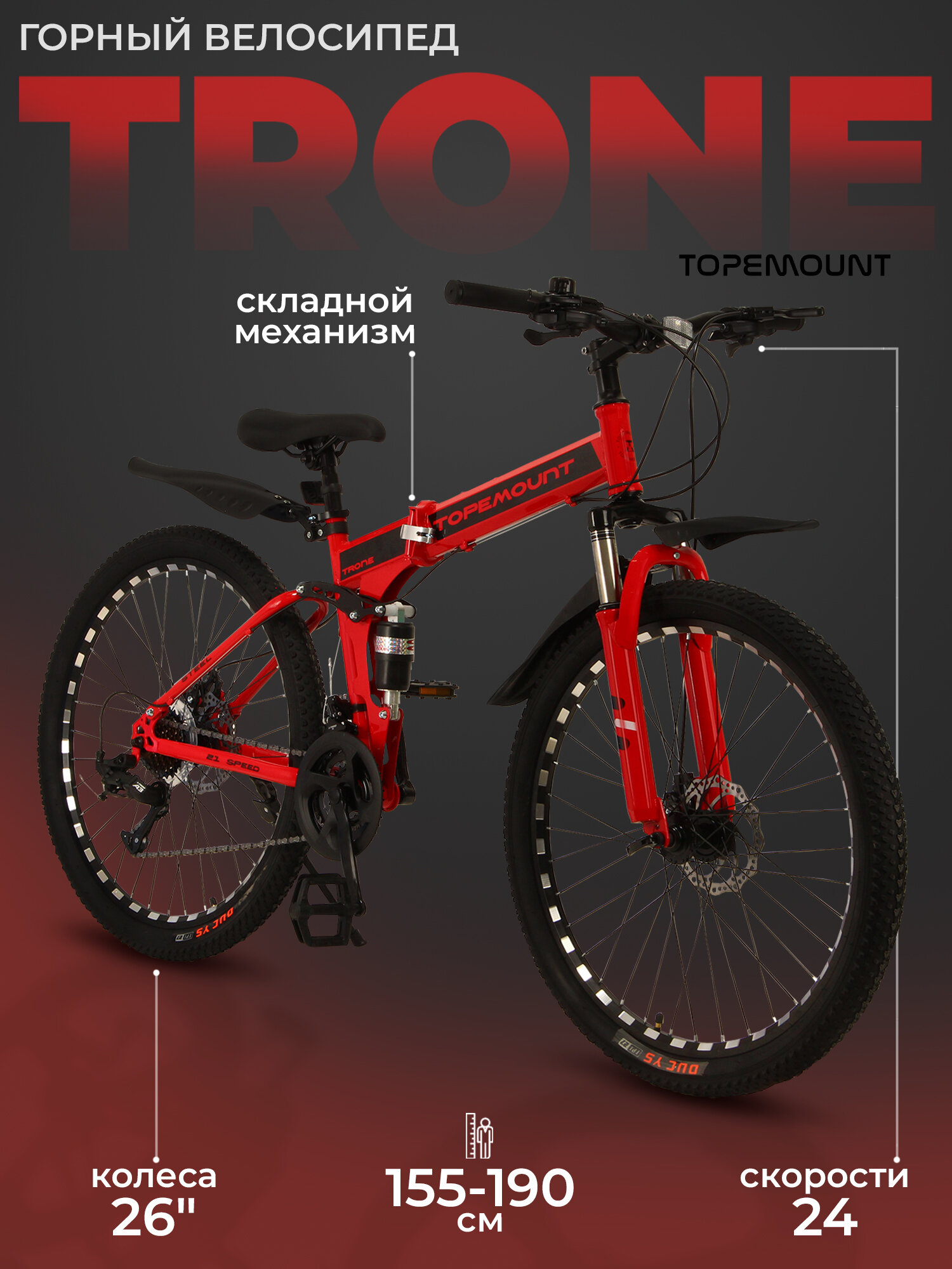 10 цен на Велосипед горный складной "Trone" 26, 17 рама, 2 амортизатора, дисковые тормоза, сталь, 24 скорости, красный