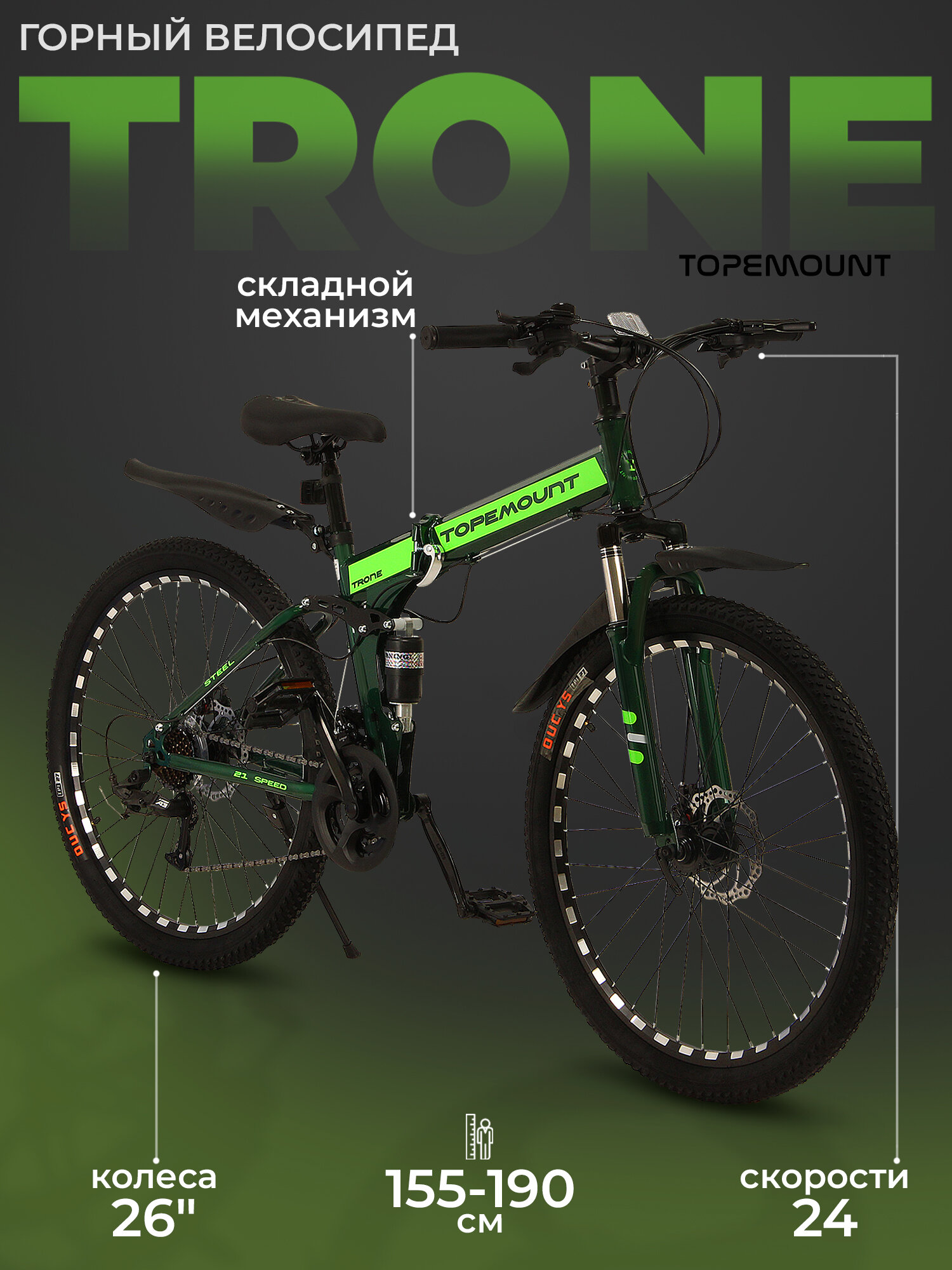 Велосипед горный складной "Trone" 26, 17 рама, 2 амортизатора, дисковые тормоза, сталь, 24 скорости, зеленый информация: