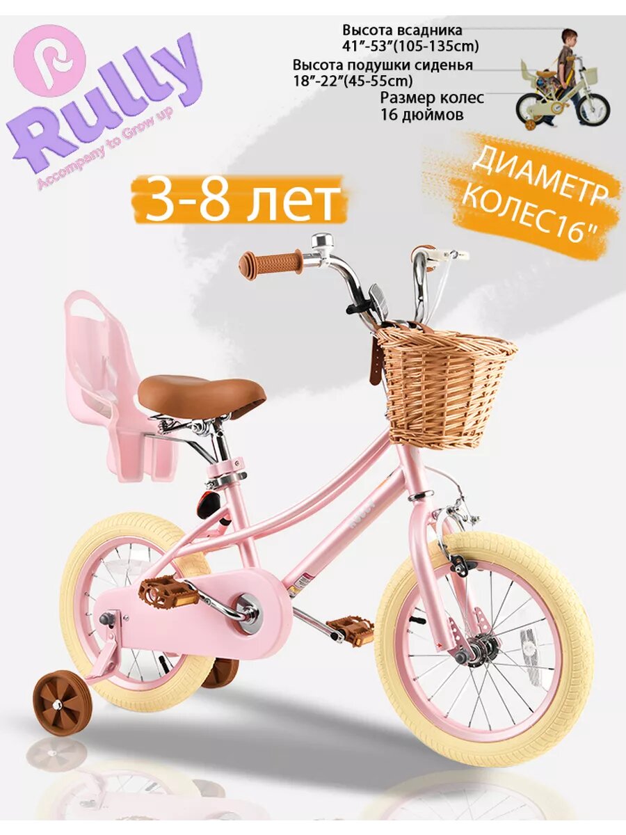 Отзывы на Велосипед RULLY 16, детский, четырехколесный, стальной, 2024 год, розовый
