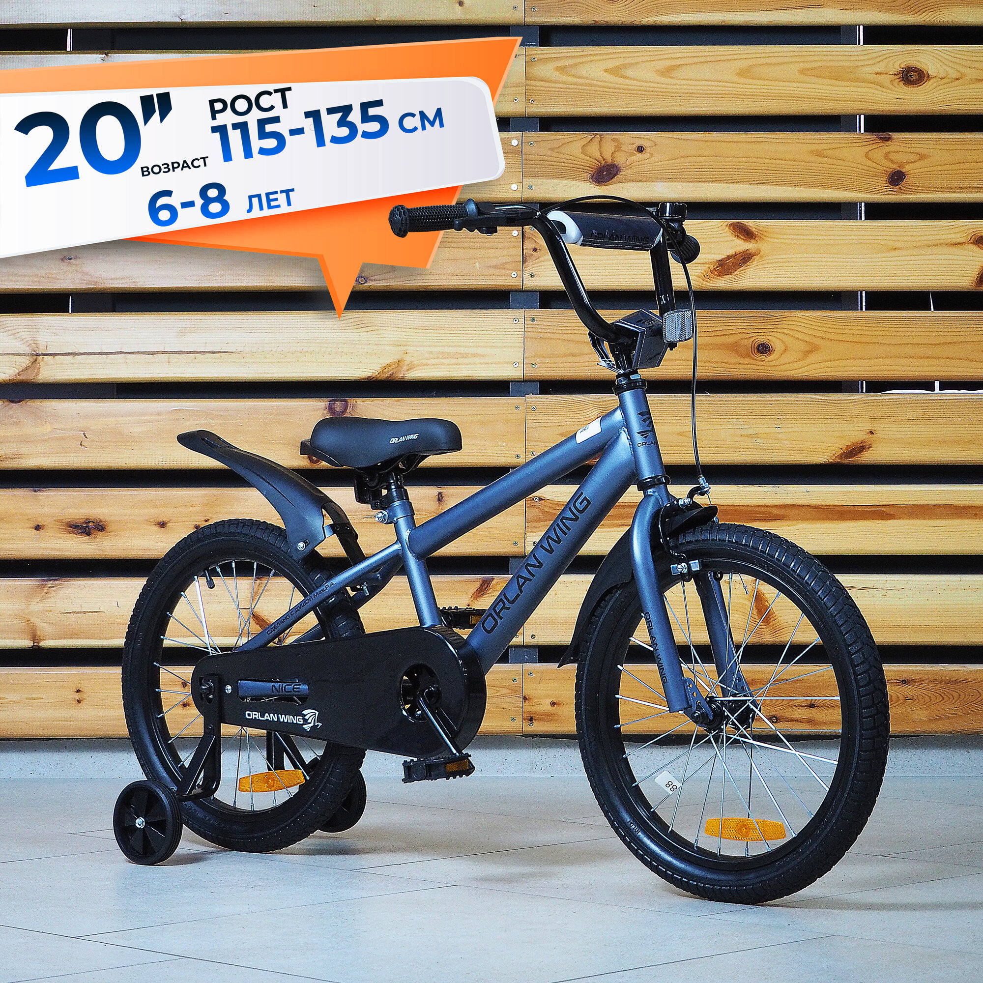 Велосипед детский 20" ORLAN WING NICE, серый, на рост 115-135см, от 6 до 8 лет, для мальчика, для девочки информация:
