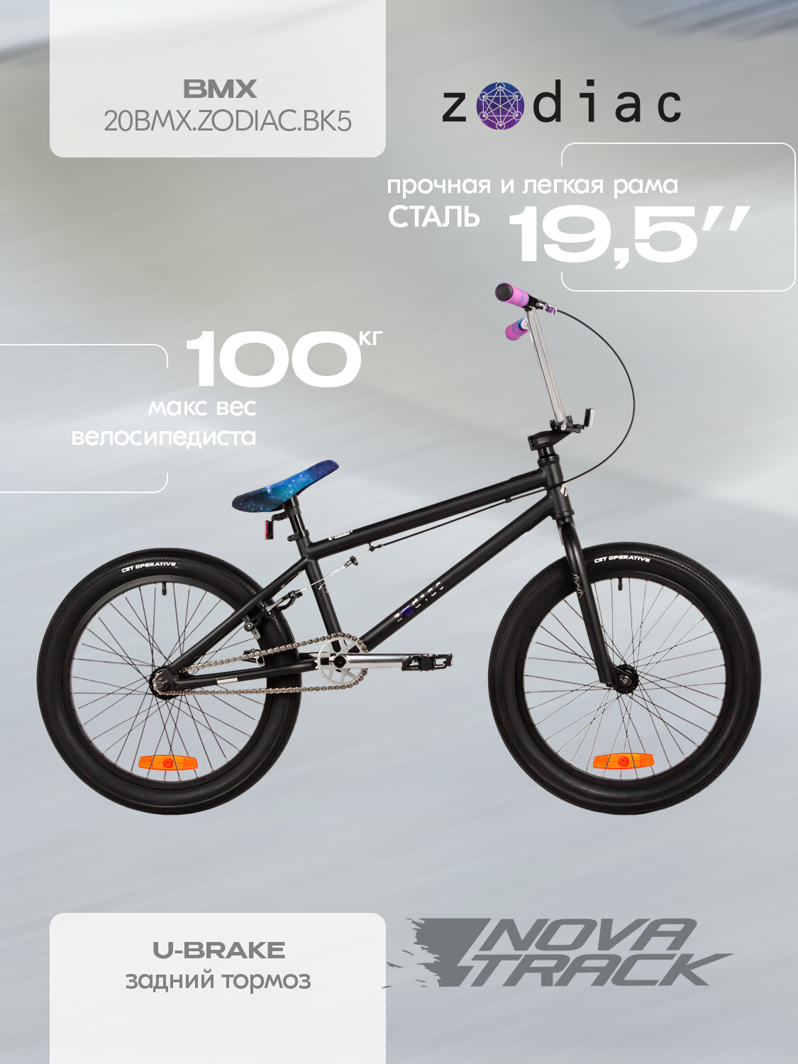 Велосипед NOVATRACK 20" BMX ZODIAC, чёрный, сталь , рама 19", U-BRAKE информация: