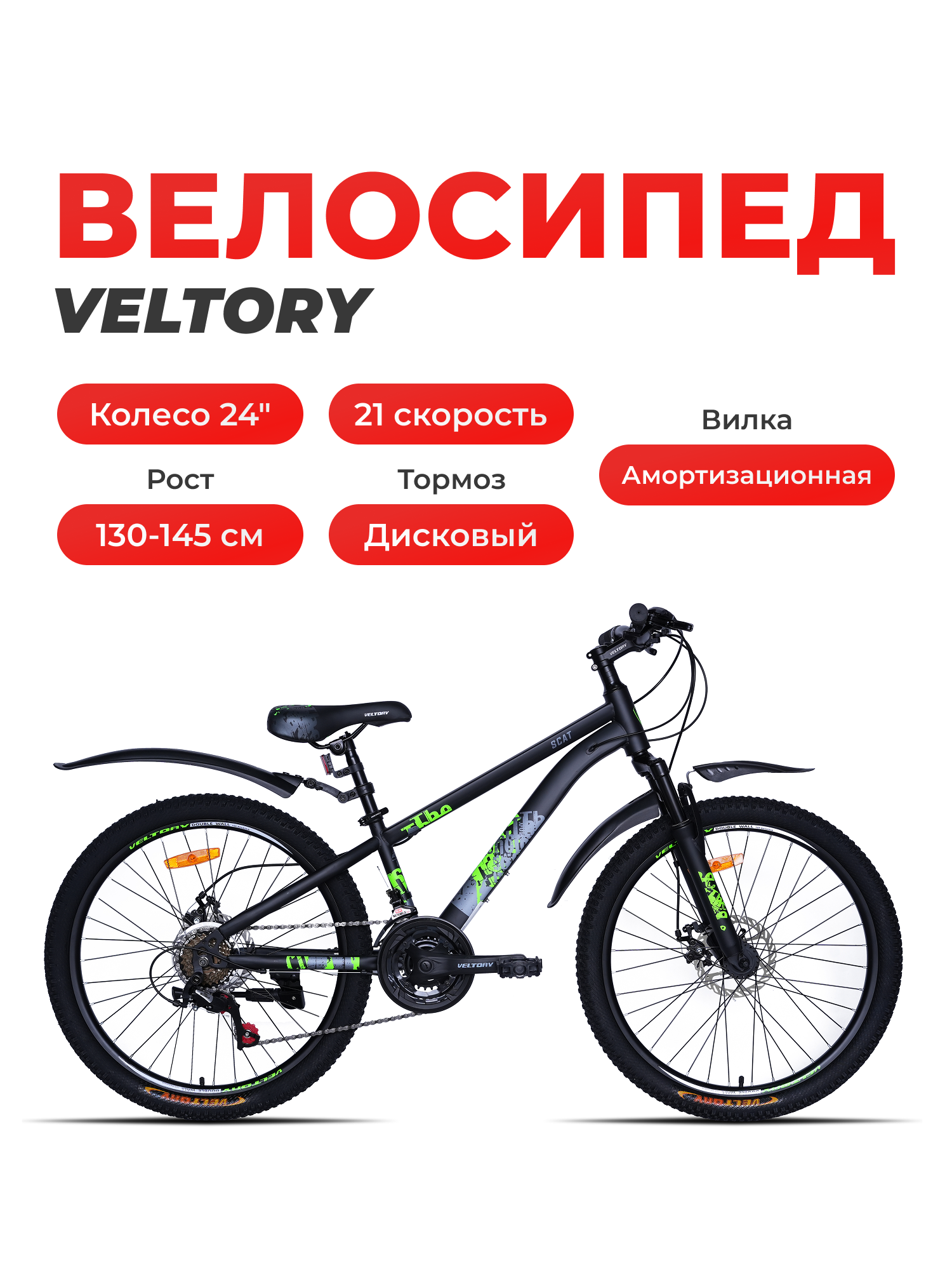 Велосипед горный подростковый VELTORY 24D-4008/ 24 колесо/ (от 9 до 13 лет, рост 130-150см) информация: