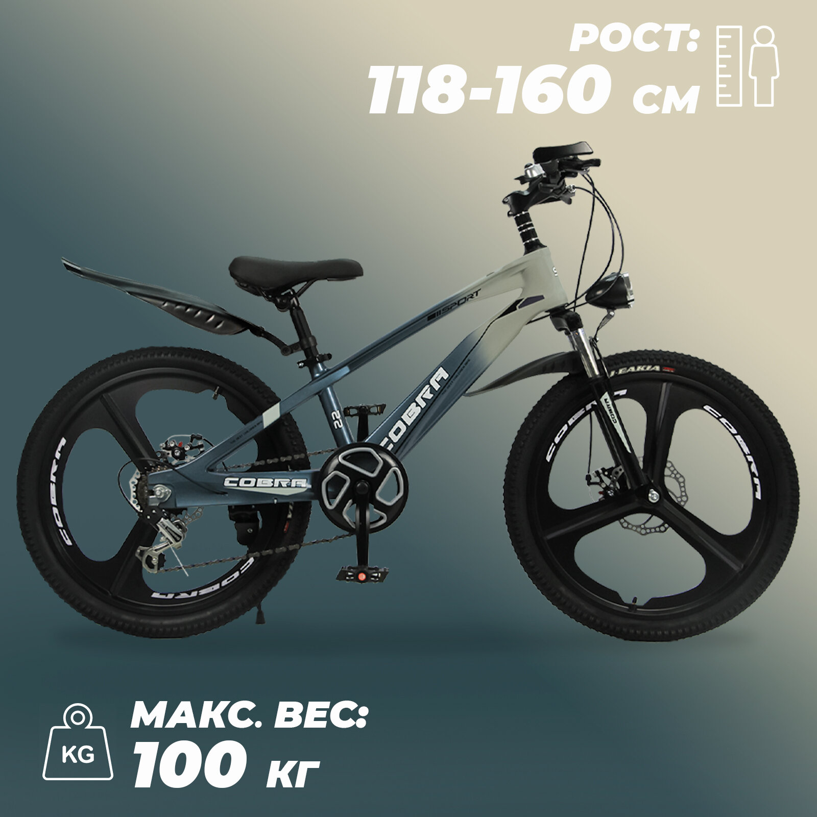 10 цен на Велосипед детский скоростной Cobra 22" серый, 6-13 лет, 7 скоростей, фара в комплекте