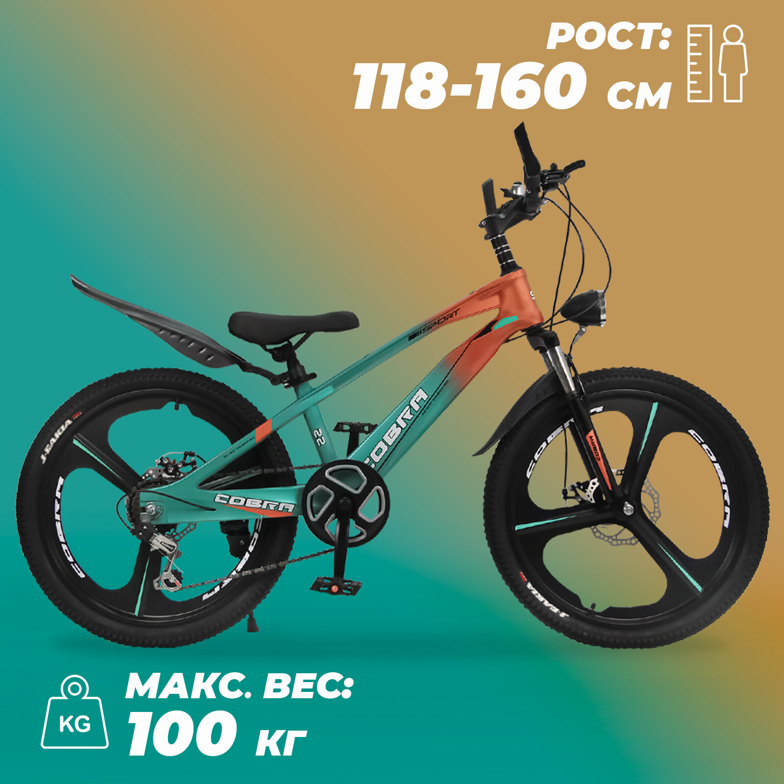 Отзывы на Велосипед детский скоростной Cobra 22" зеленый, 6-13 лет, 7 скоростей, фара в комплекте