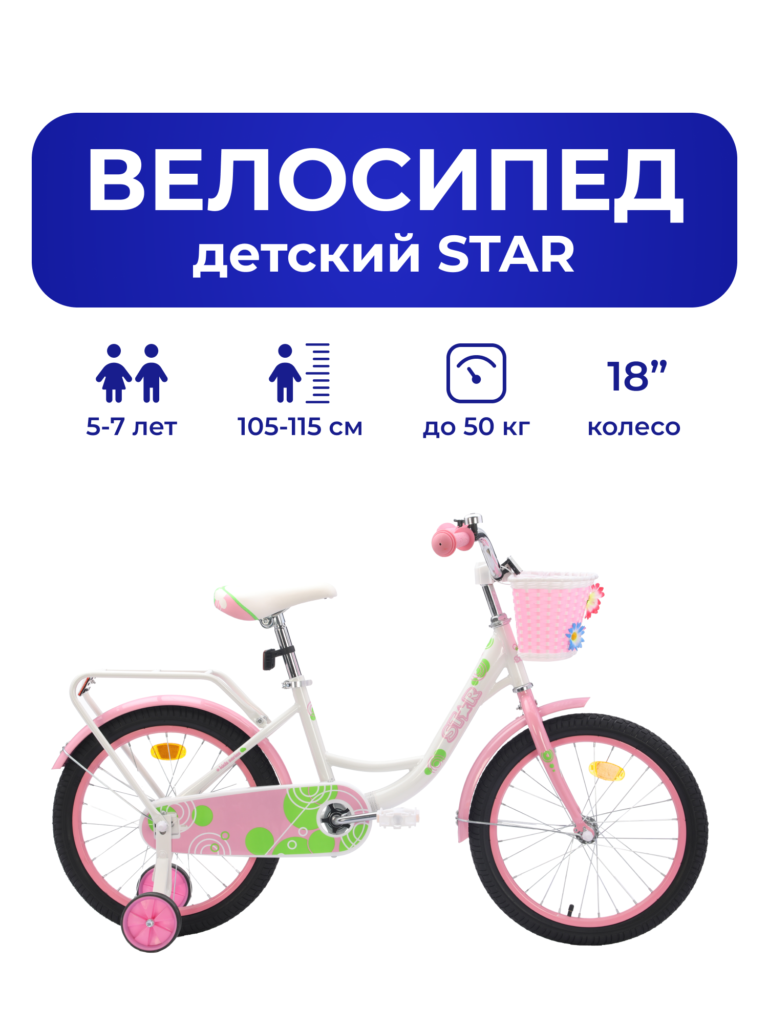 Велосипед детский 702-18" STAR / белый с розовыми вставками / на рост: 110-130см или от 5 до 7 лет информация: