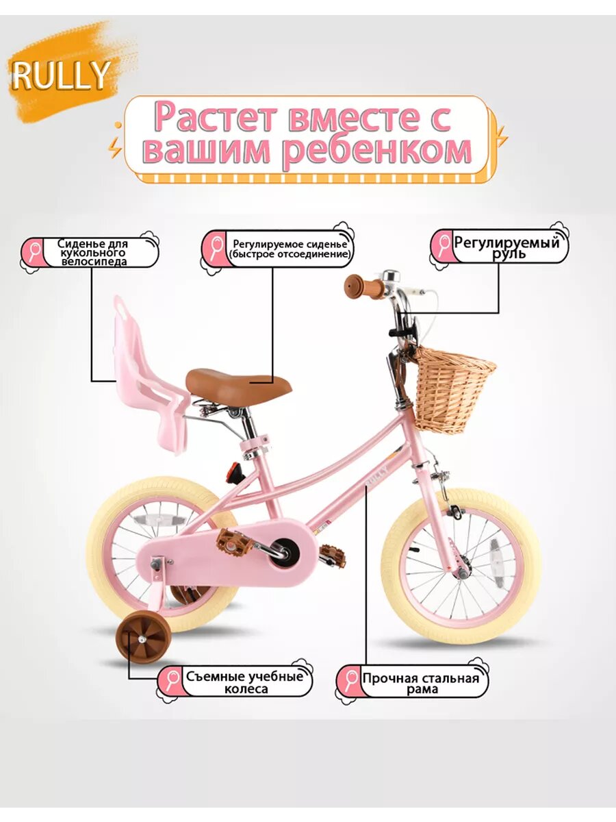 Отзывы на Велосипед RULLY, детский, четырехколесный, розовый, сталь, 2024 г