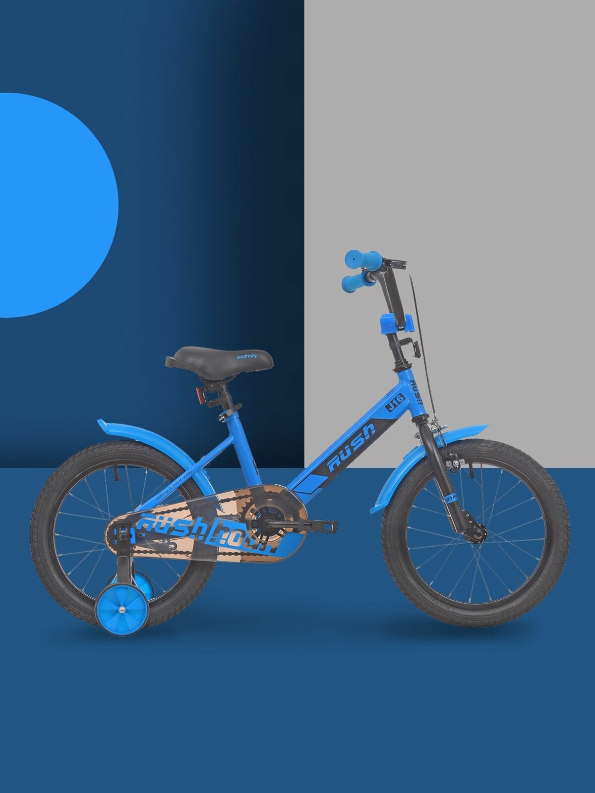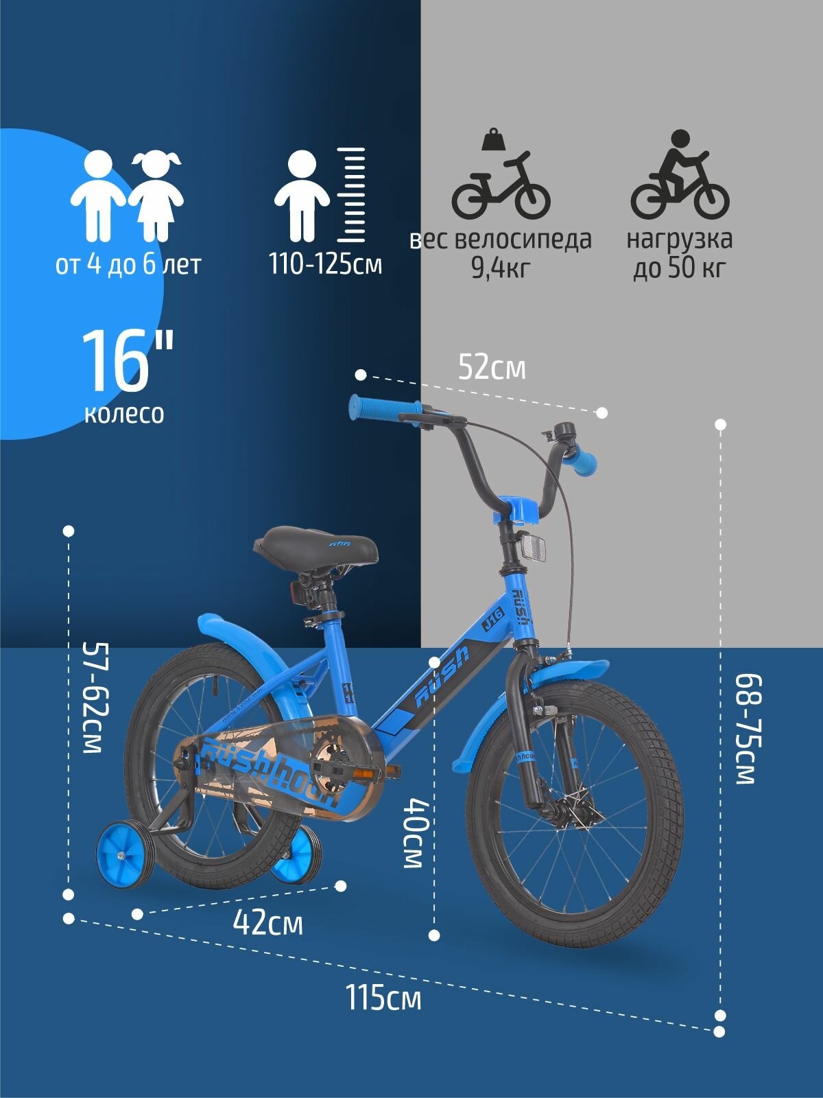 Велосипед двухколесный детский 16" дюймов RUSH HOUR J16, рост 110-125 см синий. Для девочки, для мальчиков 4 года 5 6 лет для дошкольников велик раш информация: