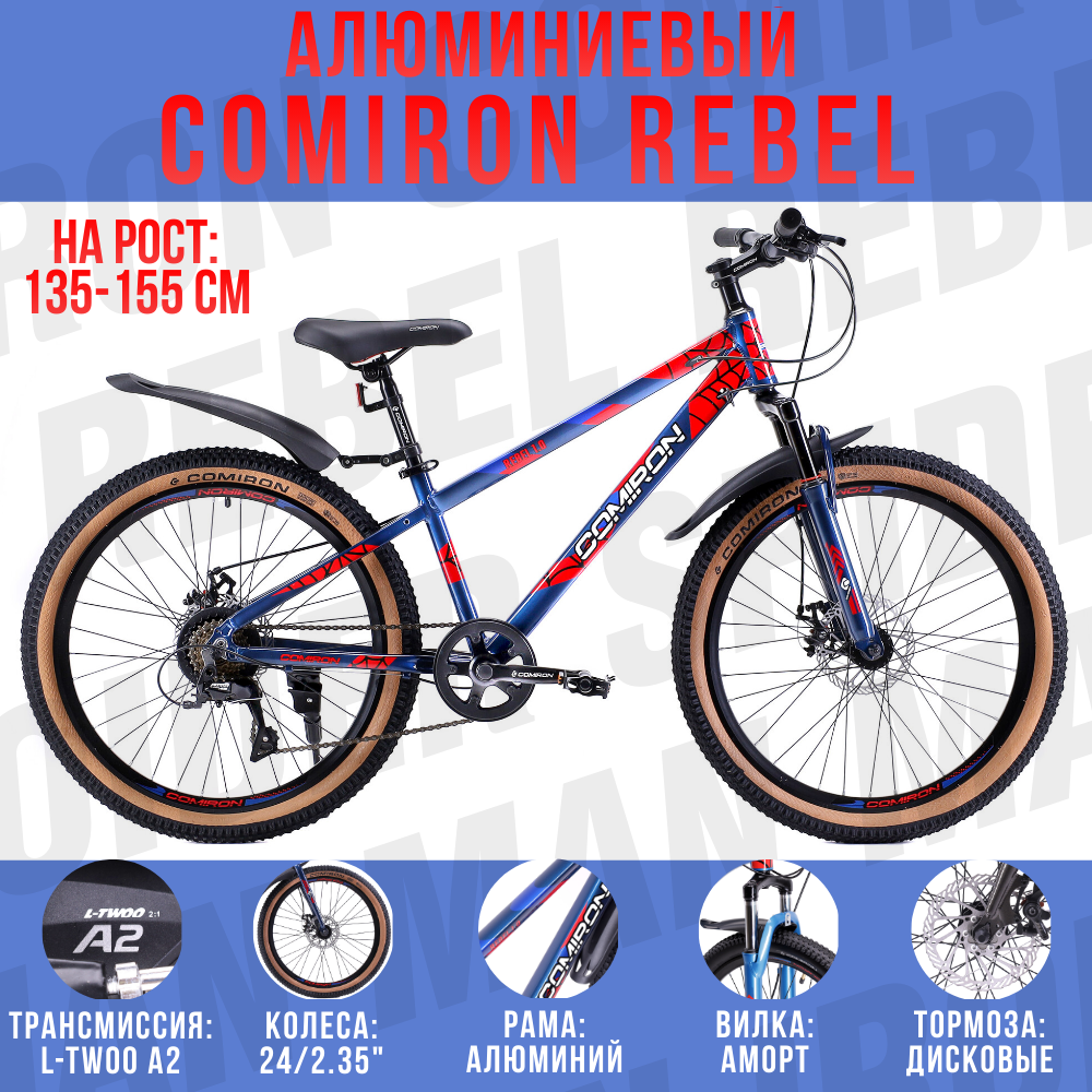 10 цен на Велосипед горный 24" дюйма. подростковый. 7-скоростей LTWOO A-2 / на рост: 135-155см / COMIRON REBEL / сине-красный