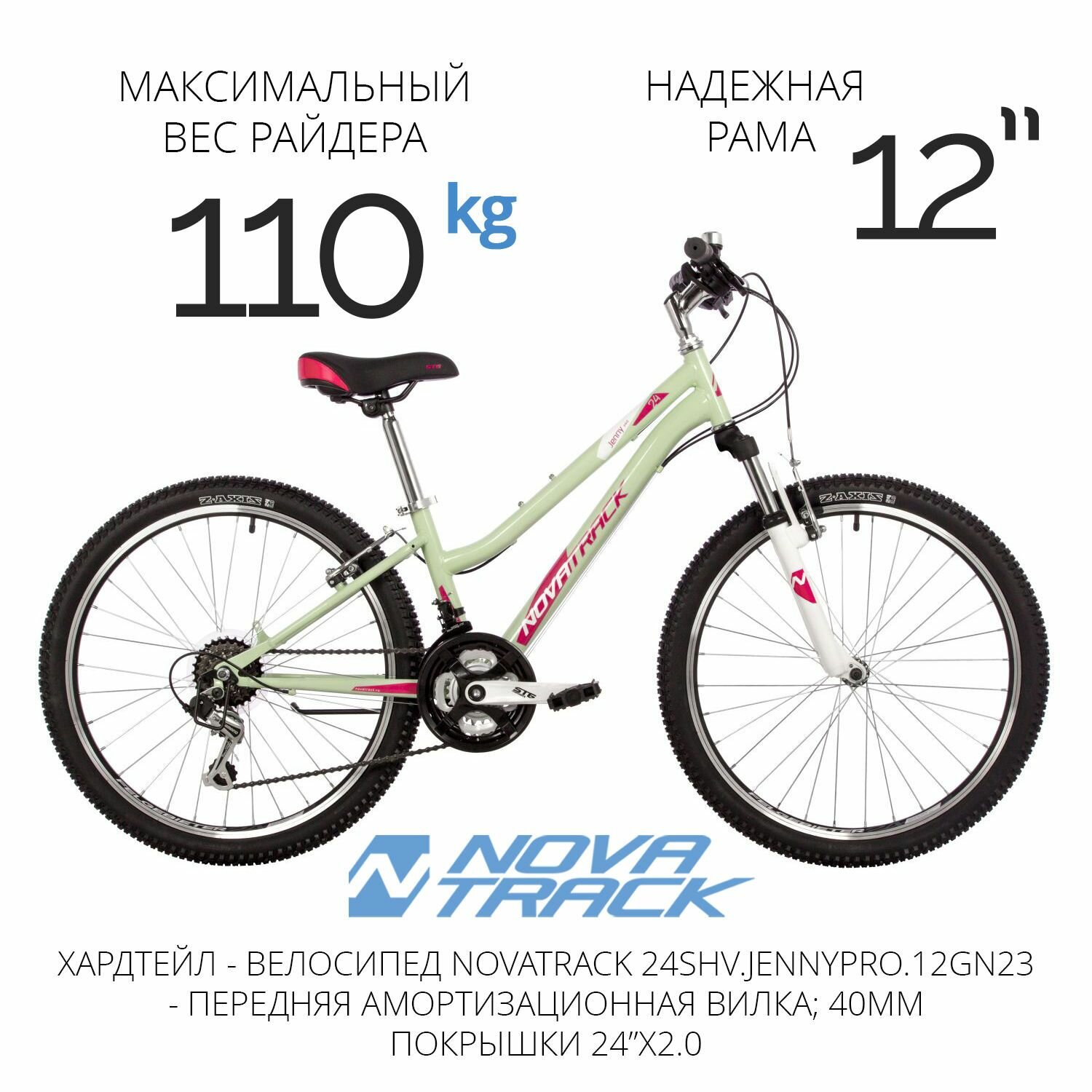 Велосипед NOVATRACK 24" JENNY PRO сталь 12', мятный, 18 скор. TY21/TS-38/TZ500/SG-6S, V-brake информация: