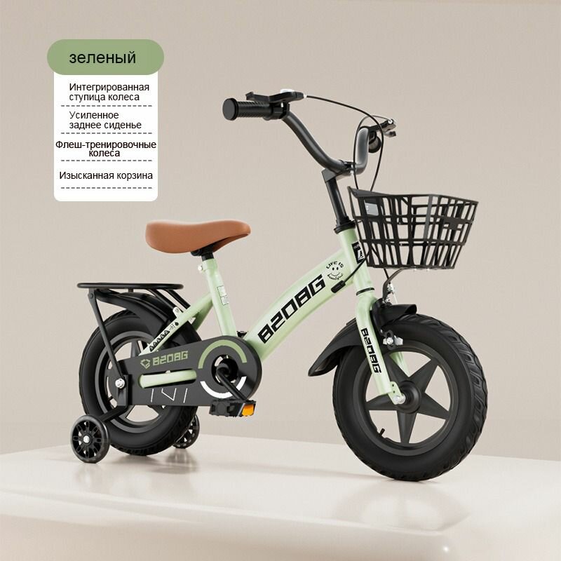 Детский велосипед ZT-818 12 дюймовый со вспомогательными колесами, универсальный для мальчиков и девочек зеленый 10 014 ₽