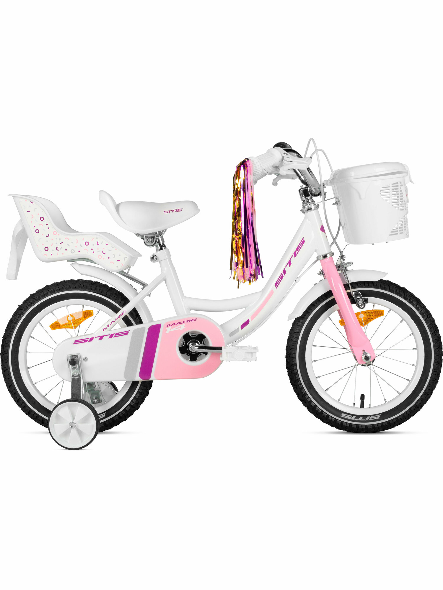 Велосипед городской SITIS MARIE 14 (2025) White-Pink, для девочек на рост 95-110 см, стальная рама, ригидная вилка информация:
