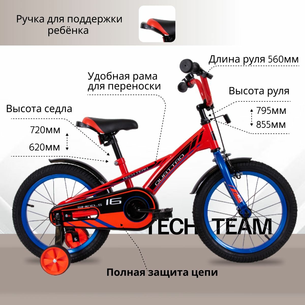 Велосипед детский Tech Team Quattro 16" колесо, (9" рама) красный 10 870 ₽