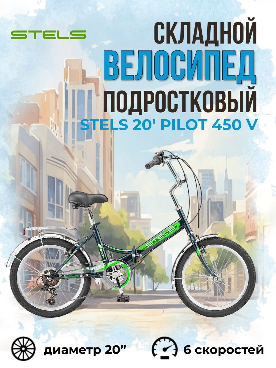 Отзывы на Складной велосипед подростковый Stels 20" Pilot 450 V рама 13,5" темно-зеленый