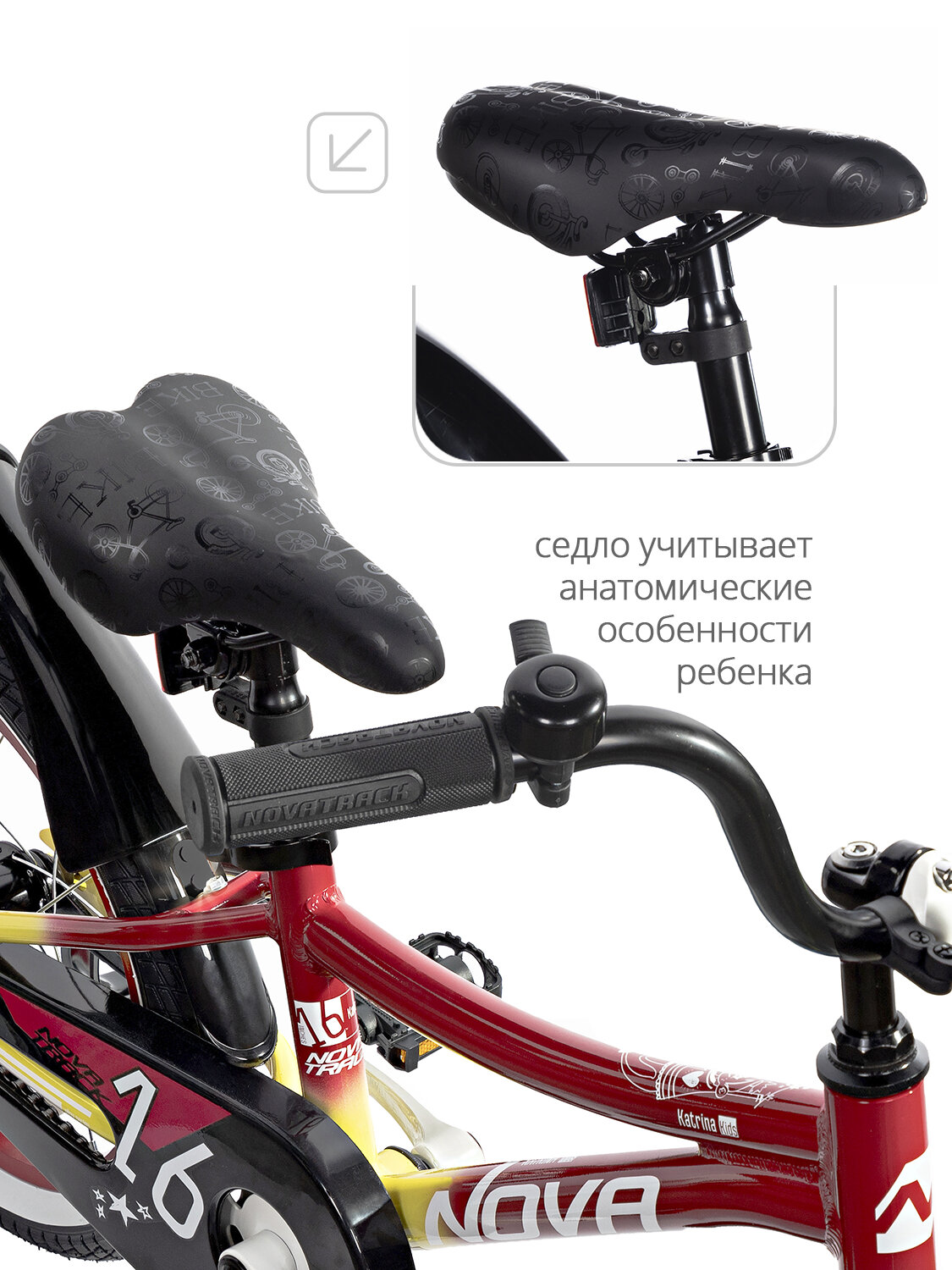 Отзывы на Велосипед NOVATRACK 16" KATRINA алюм, красный-жёлтый, полная защ. цепи, пер. руч, зад. нож. тормоз