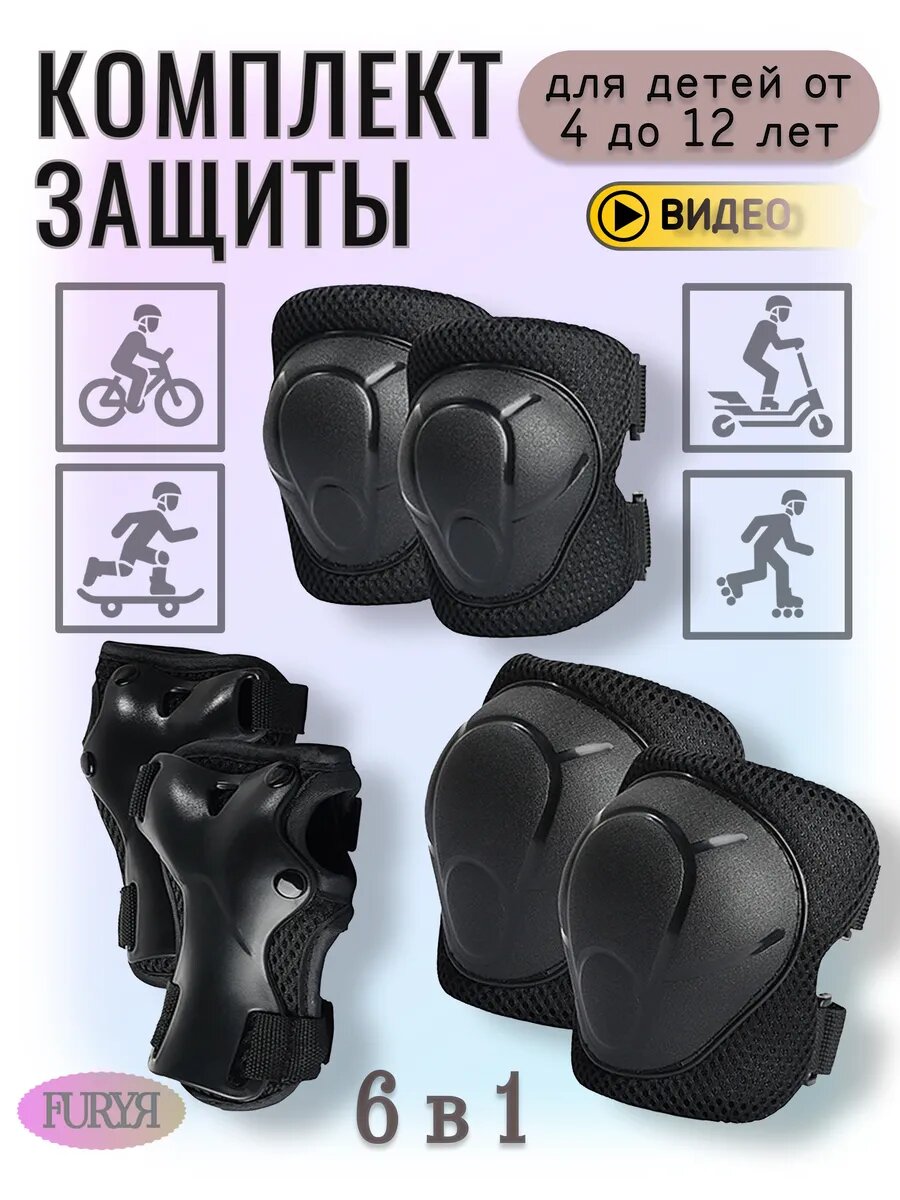 Отзывы на Защита для роликов детская (наколенники, налокотники, защита кистей) размер S, цвет черный