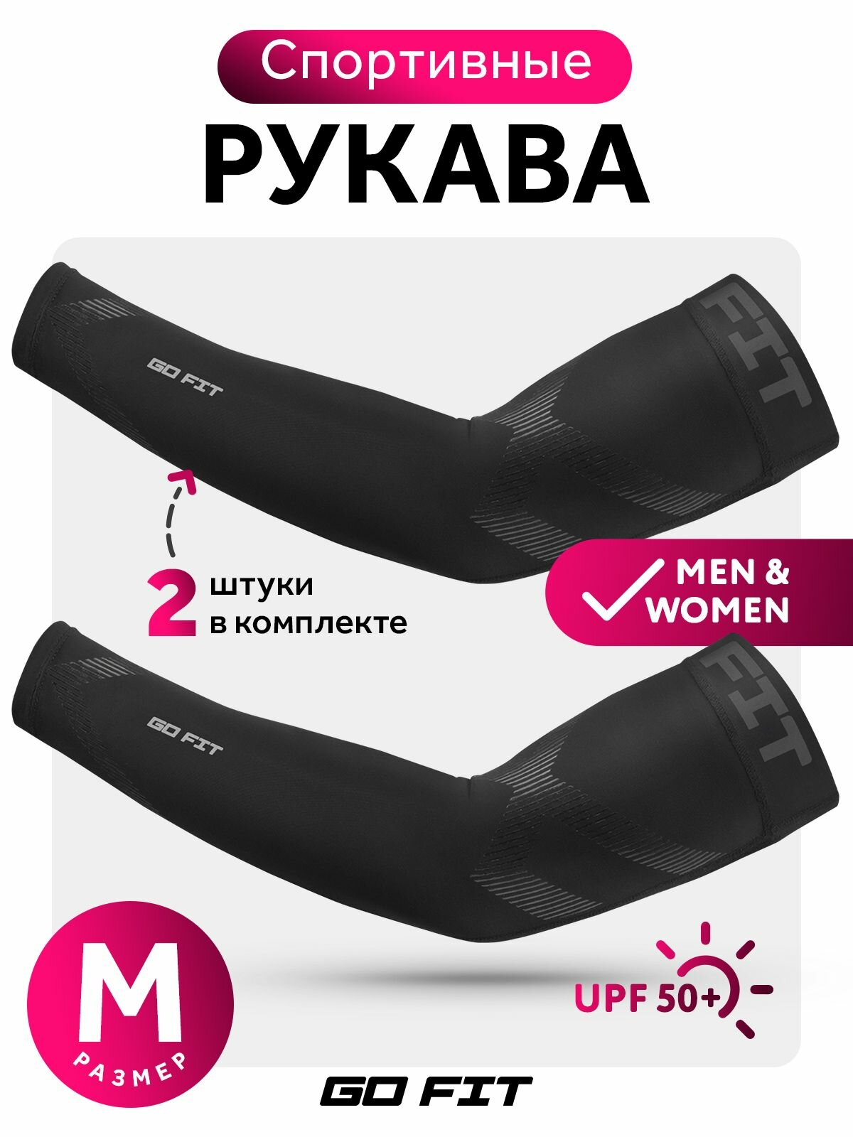 Рукава спортивные GO FIT Sports Sleeves, размер M, компрессионные нарукавники для футбола, аксессуары для спорта, черный информация: