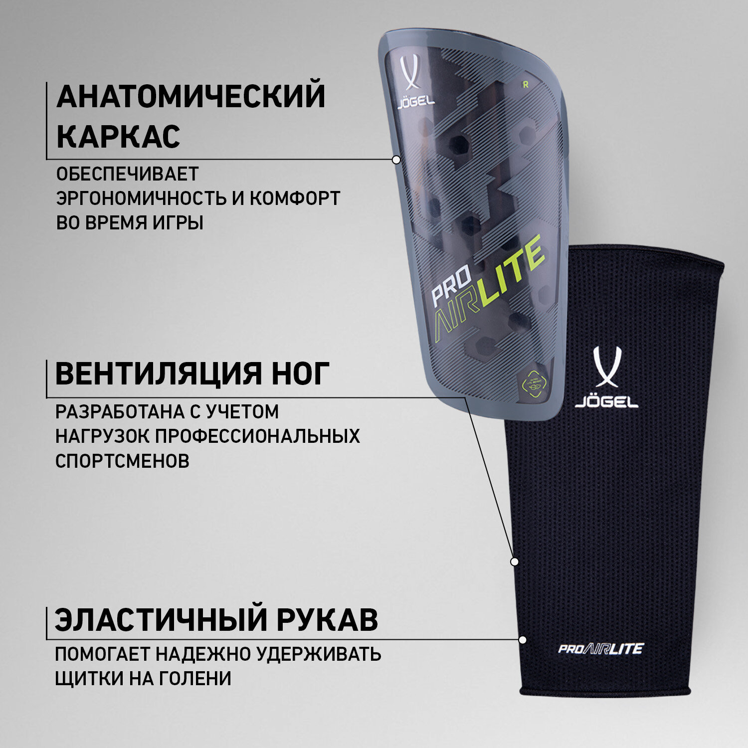 Щитки футбольные Jogel Proairlite для детей и взрослых, размер M, цвет серый информация: