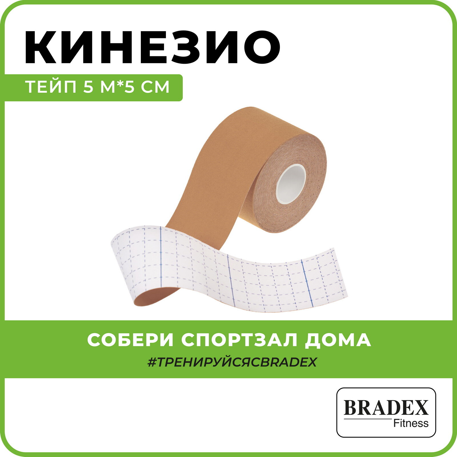 10 цен на Тейп кинезио Bradex для спорта, хлопок 95%, спандекс 5%, 5 м х 5 см, бежевая