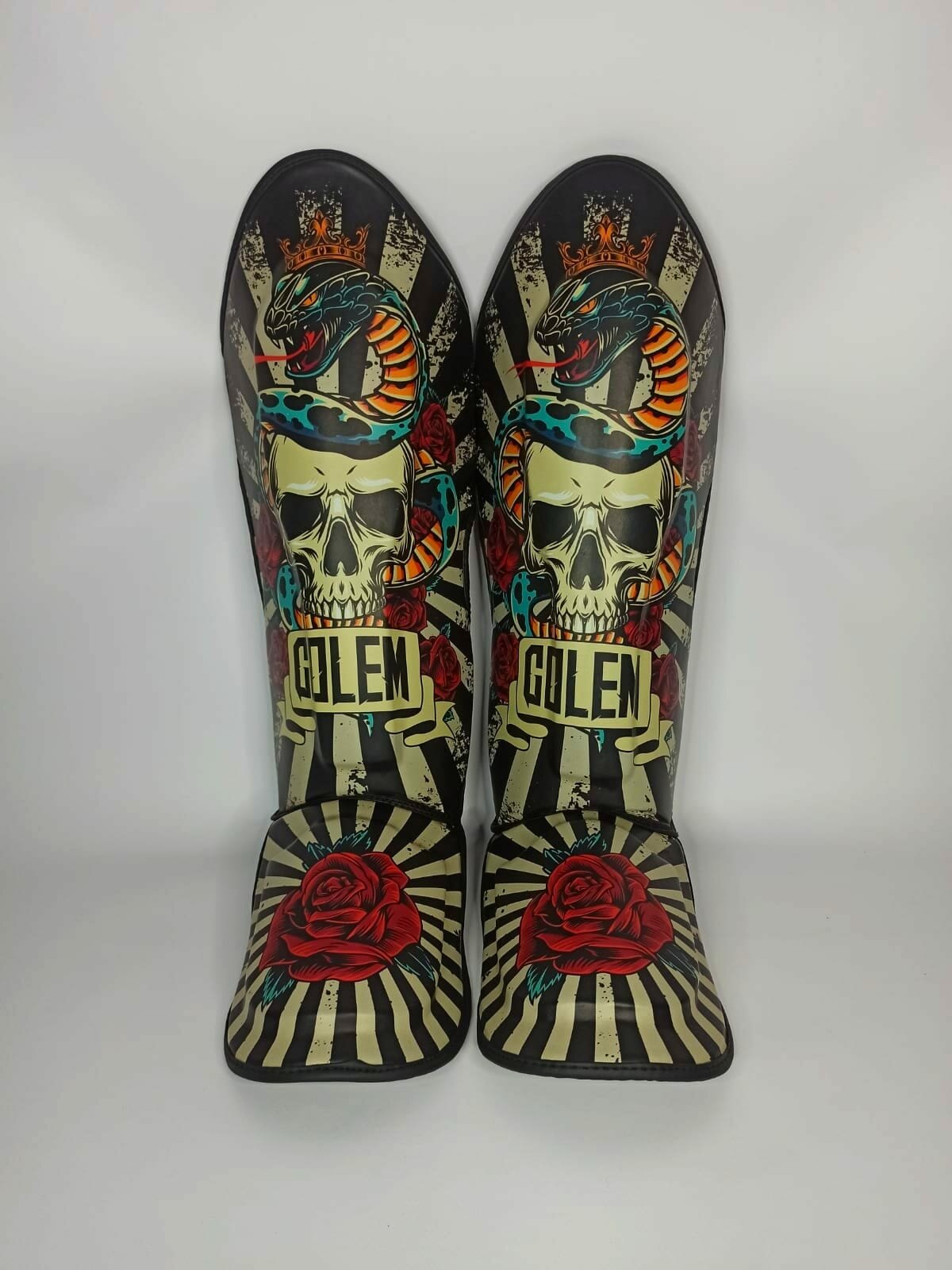 Защита голеностопа, голени для бокса и ММА, для мужчин, женщин, черный, змея и череп, L информация: