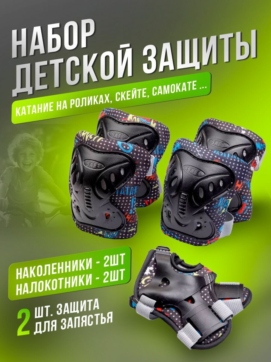 Комплект детской защиты для катания на роликах и самокате, размер S, (черный) 9994 1 050 ₽