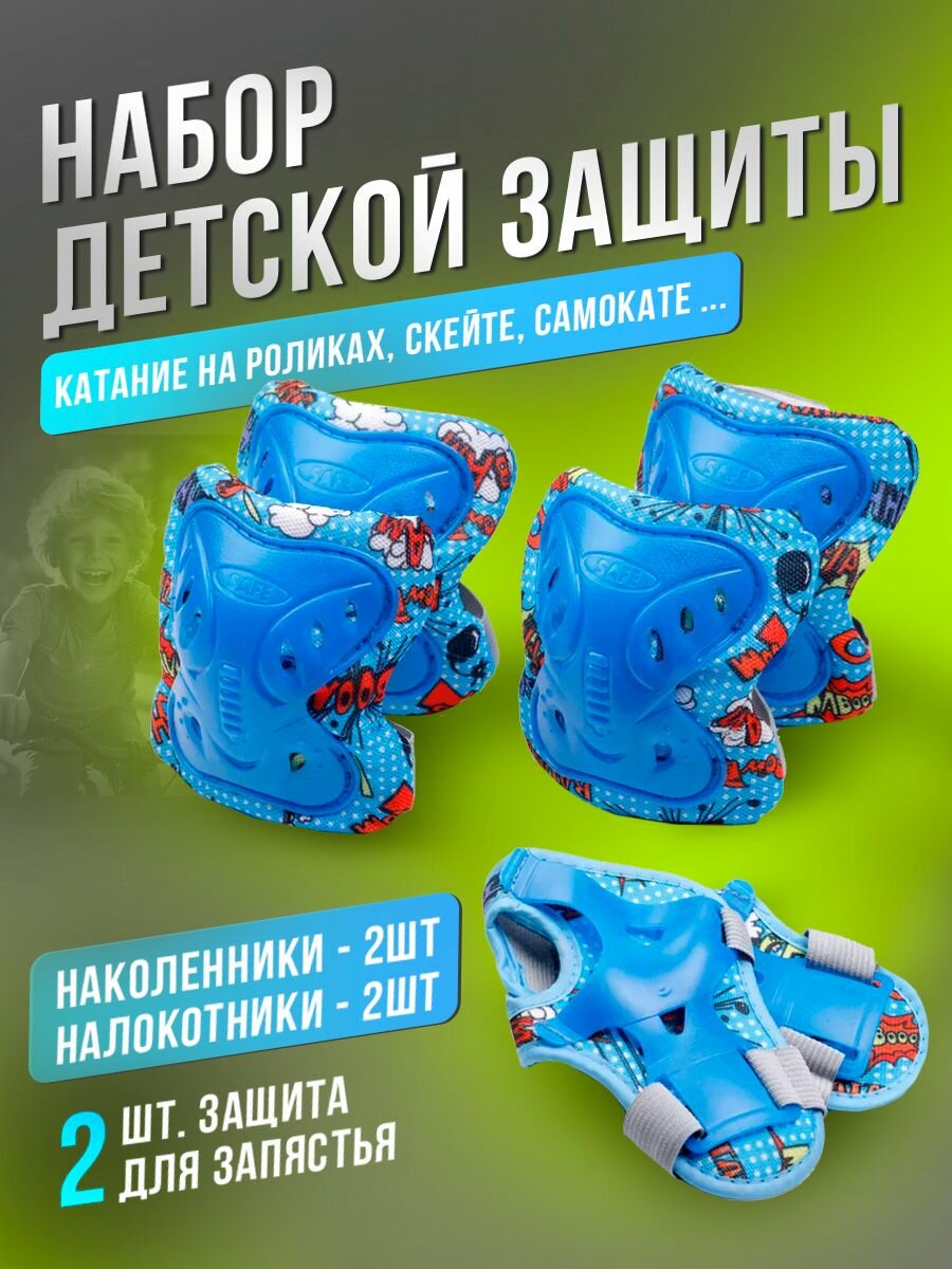 Отзывы на Комплект детской защиты для катания на роликах и самокате, размер М, (синий) 9995