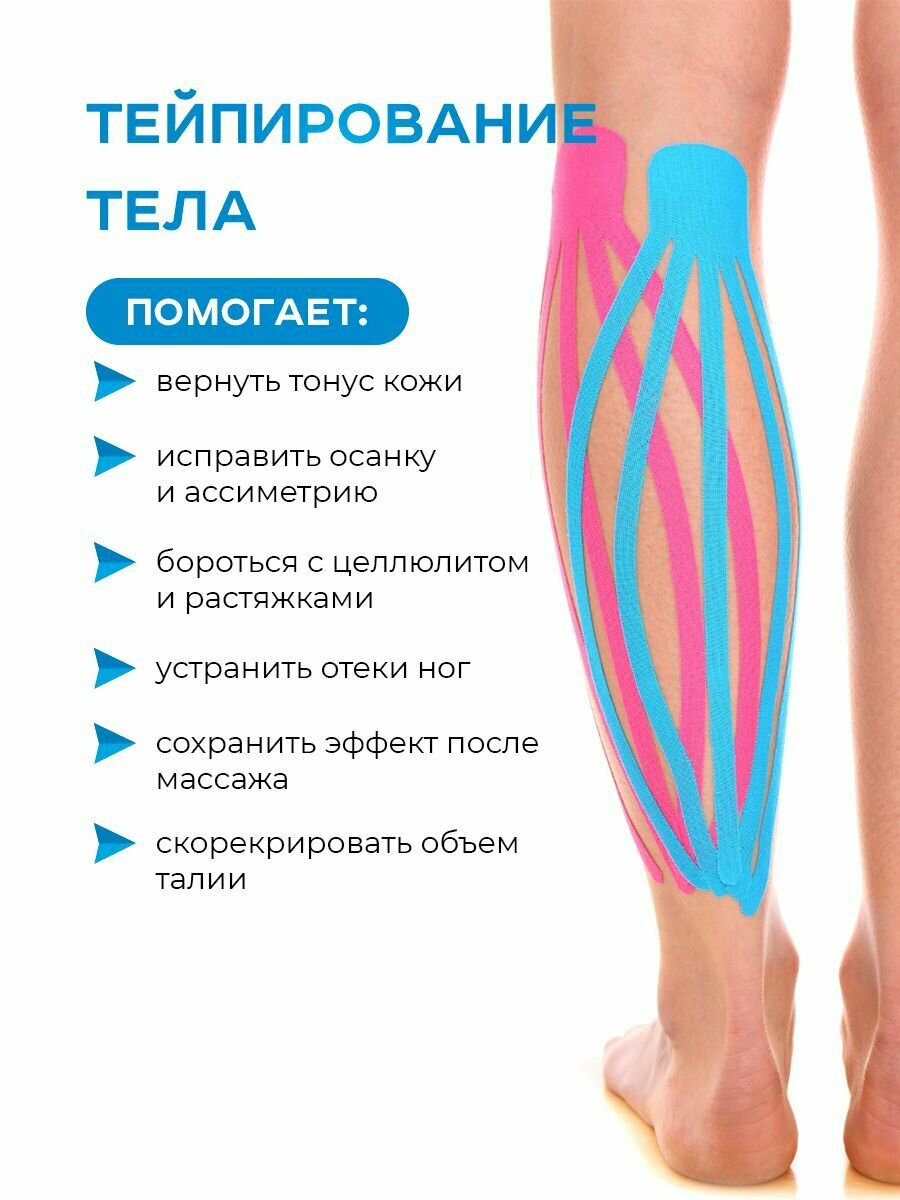 Кинезиотейп для лица и тела, спортивный пластырь, тейп лента,5см х 5м, 420 ₽