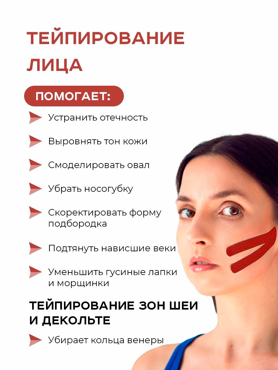 Отзывы на Тейп, кинезиотейп для лица и тела, спортивный пластырь, тейп лента, тейп 5см х 5м, тейп красный,