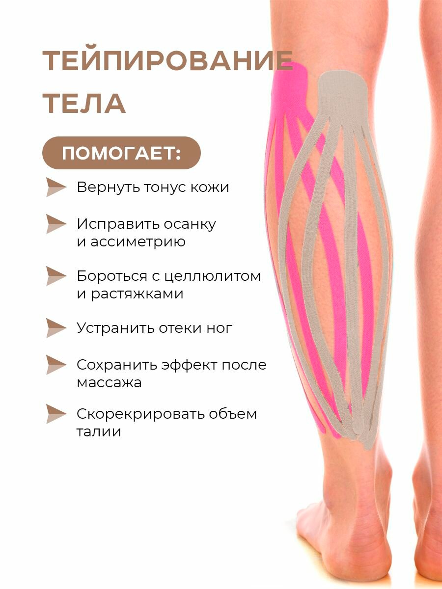 Кинезиотейп для лица и тела, спортивный пластырь, тейп лента,5см х 5м, 420 ₽