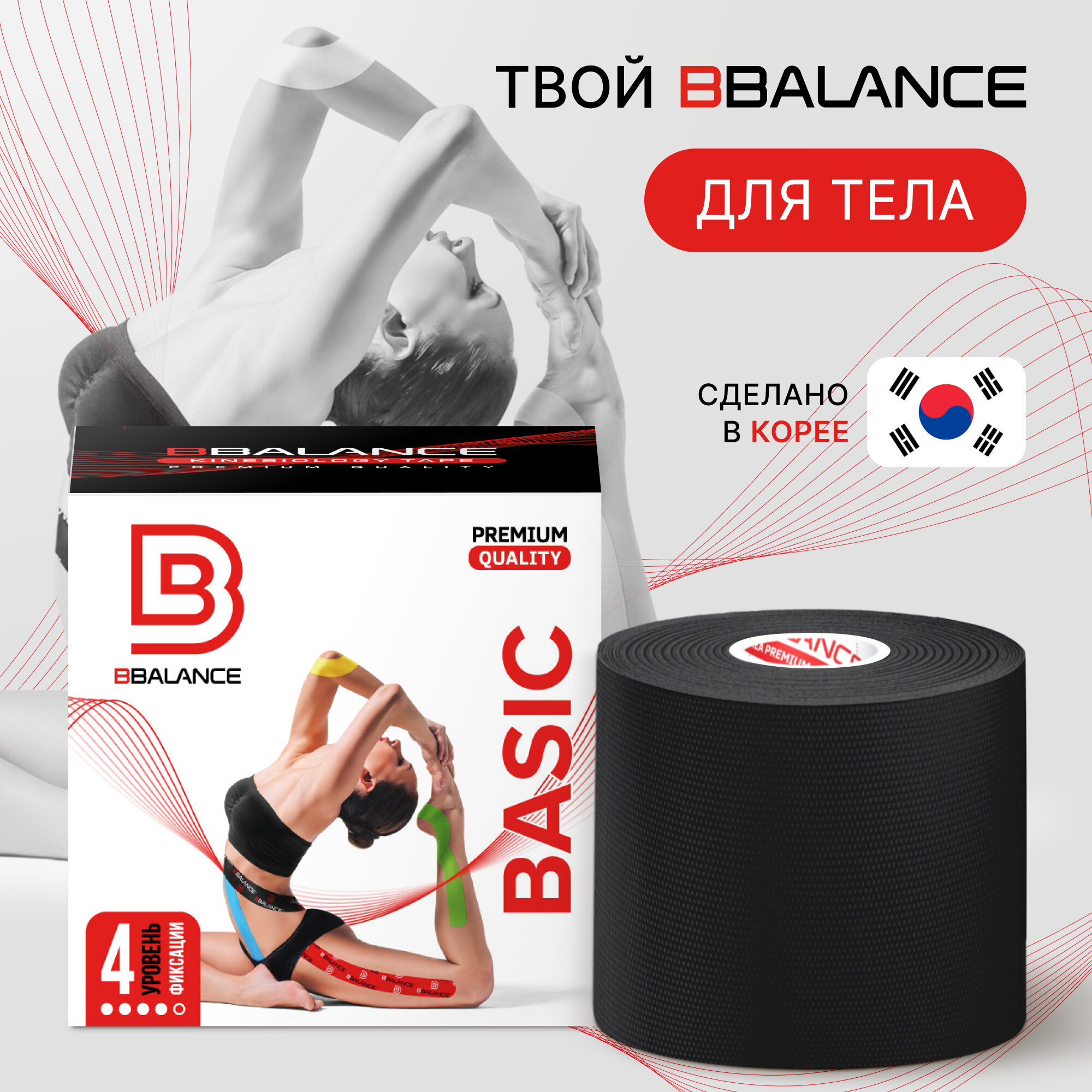 BBalance BASIC, кинезио тейп для тела. Размер 5см*5м, цвет черный информация:
