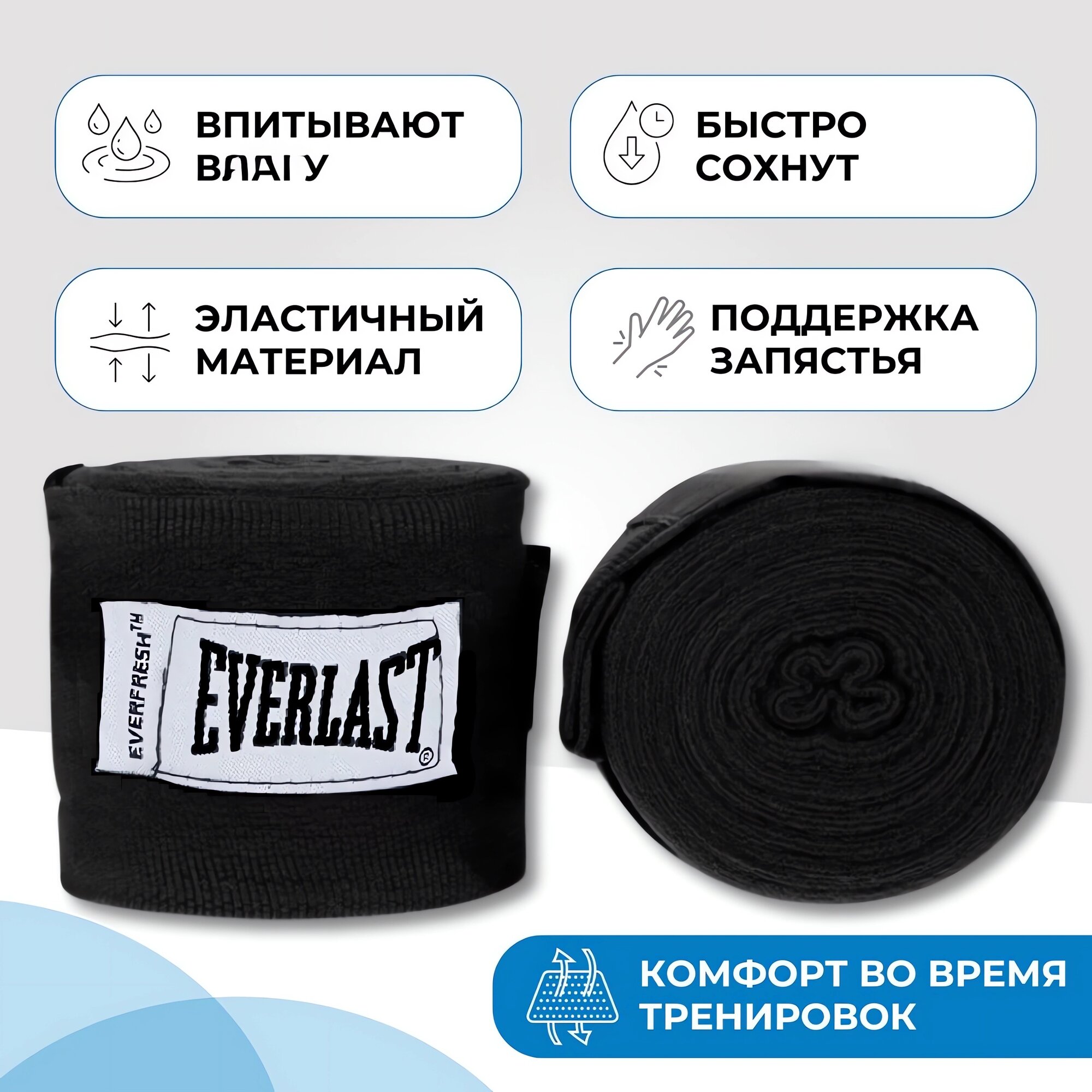 Отзывы на Кистевые эластичные бинты Everlast для бокса, MMA и единоборств, черные, 3 метра, размер S