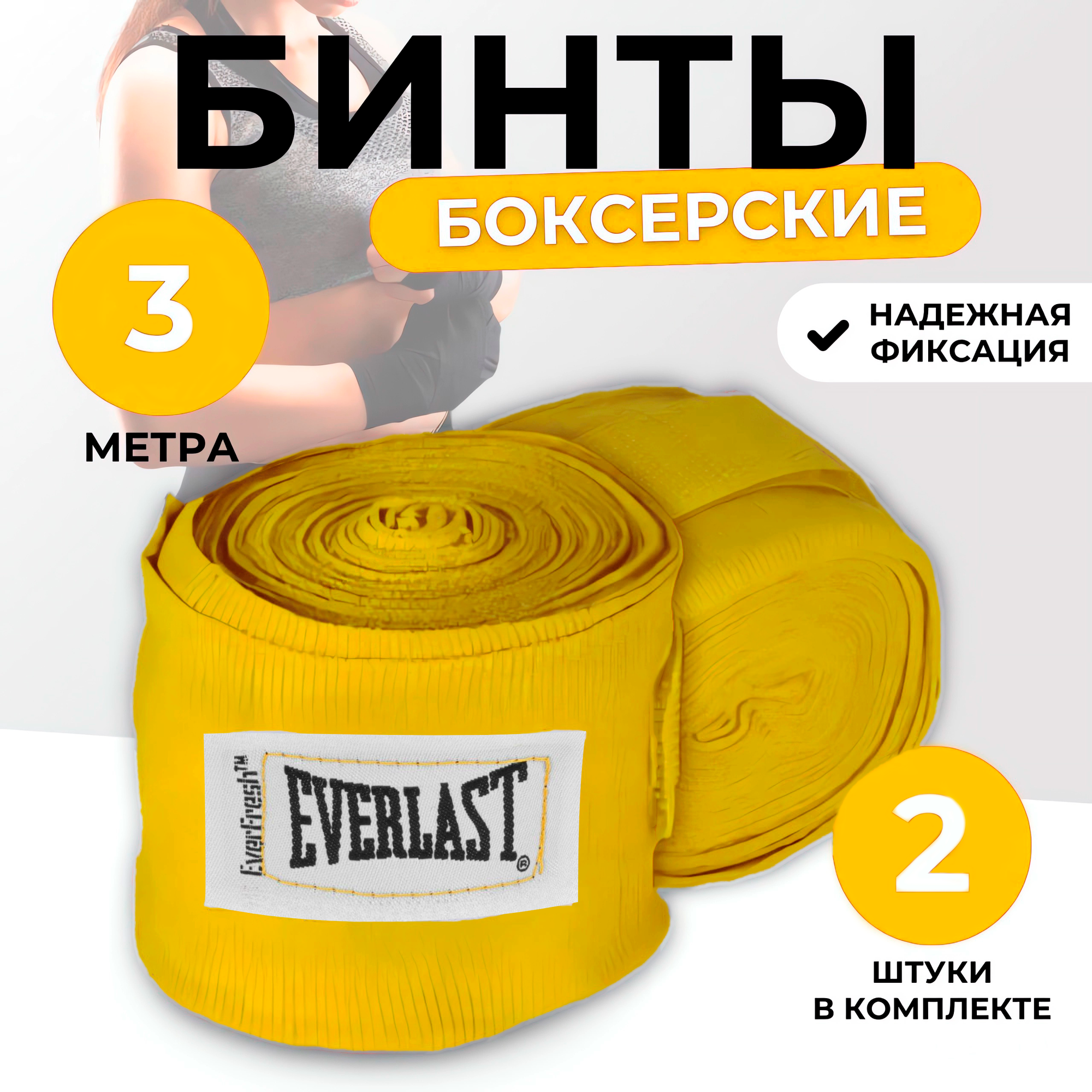 10 цен на Кистевые эластичные бинты Everlast для бокса, MMA и единоборств, желтые, 3 метра, размер S