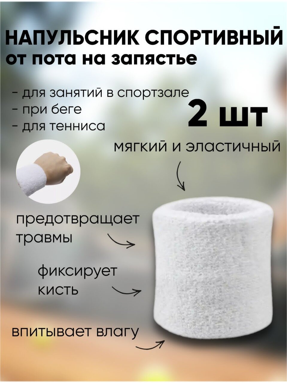 Напульсник спортивный от пота на запястье белый 2 шт информация: