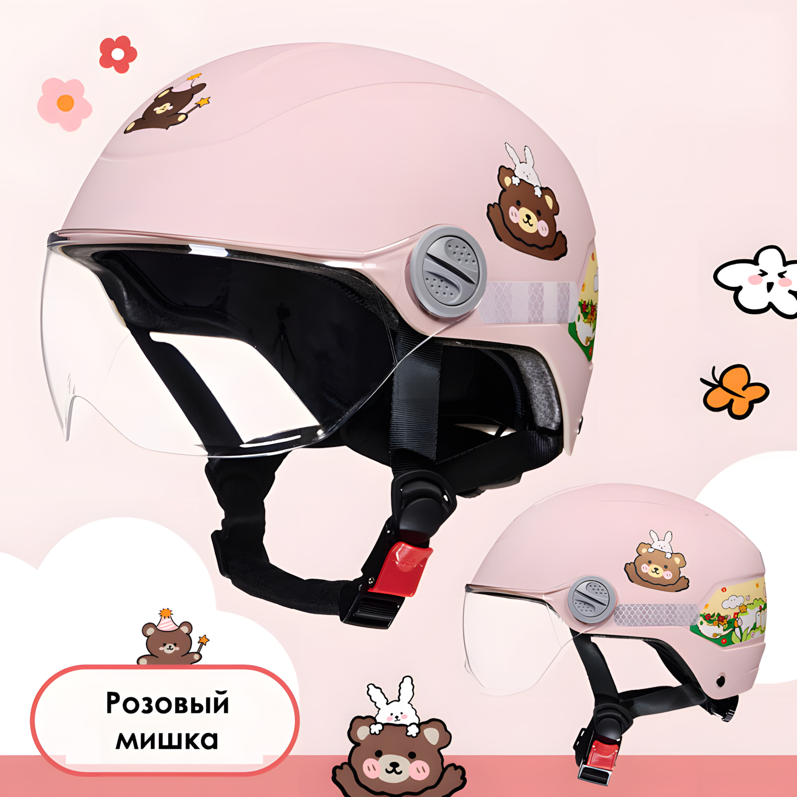 Отзывы на Велосипедный шлем BYB для детей и подростков (3-15 лет) с коротким прозрачным визором, розовый мишка