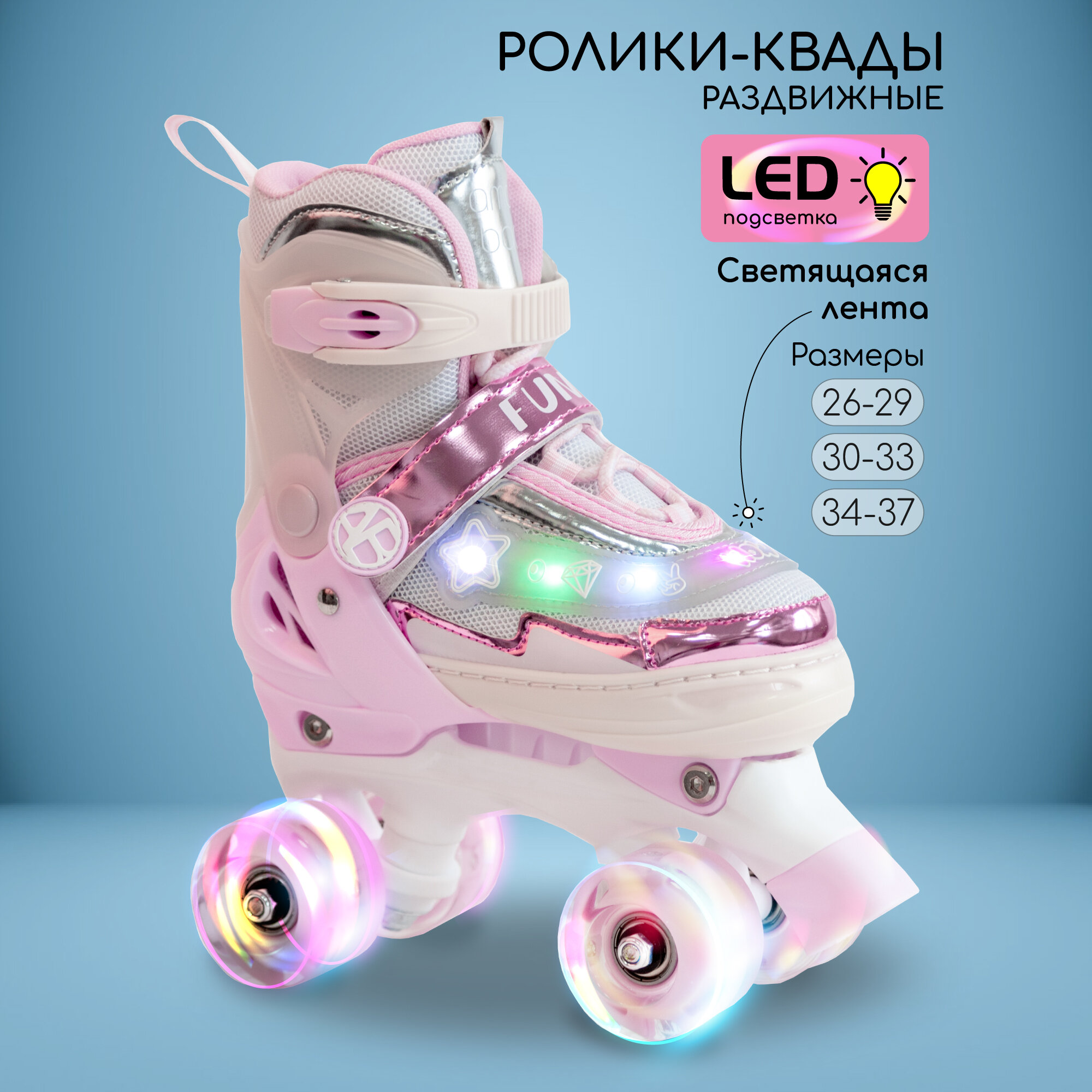 Ролики Amarobaby Glory раздвижные со светящимися колесами, бежевый/розовый, размер 26-29 информация: