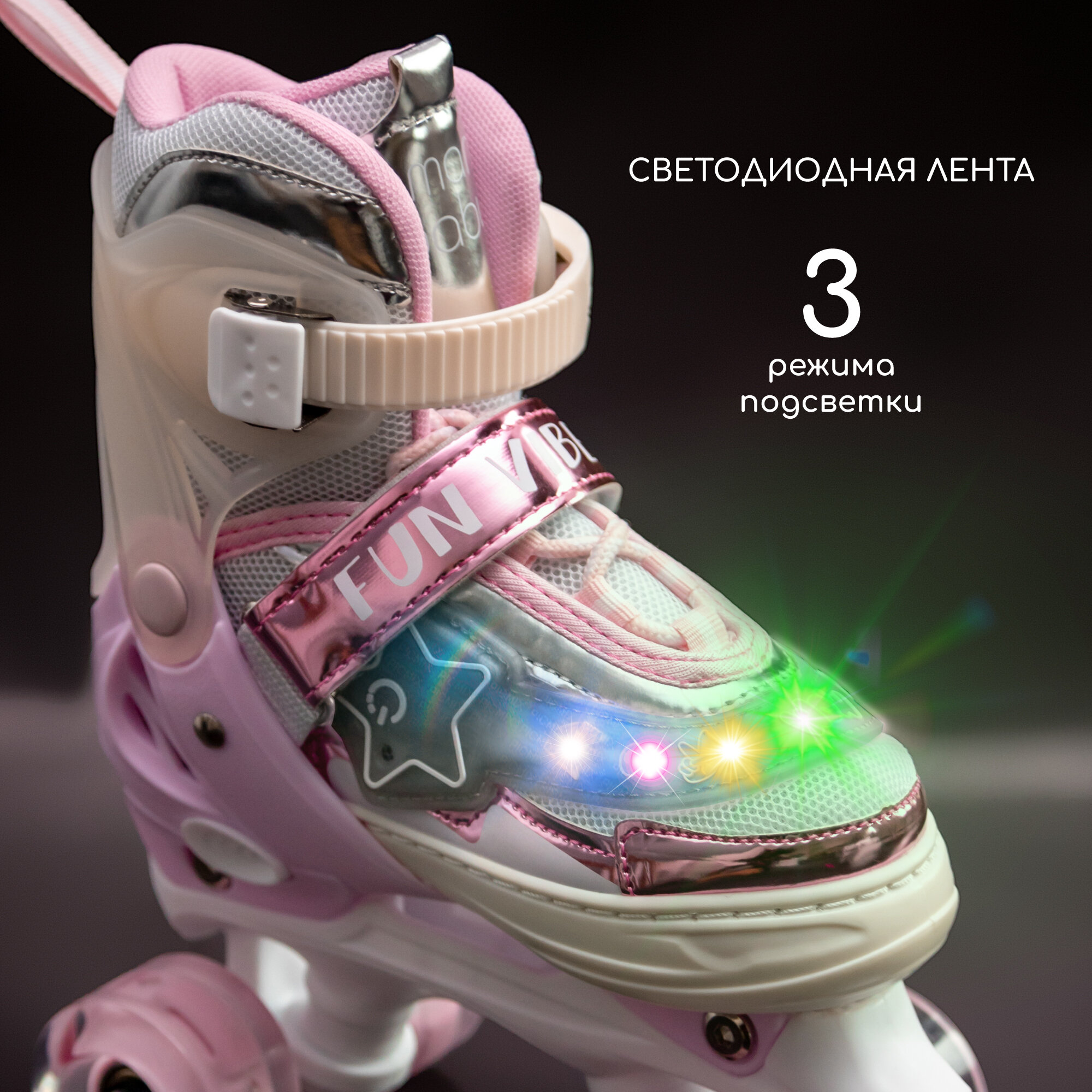 Ролики Amarobaby Glory раздвижные со светящимися колесами, бежевый/розовый, размер 30-33 5 982 ₽