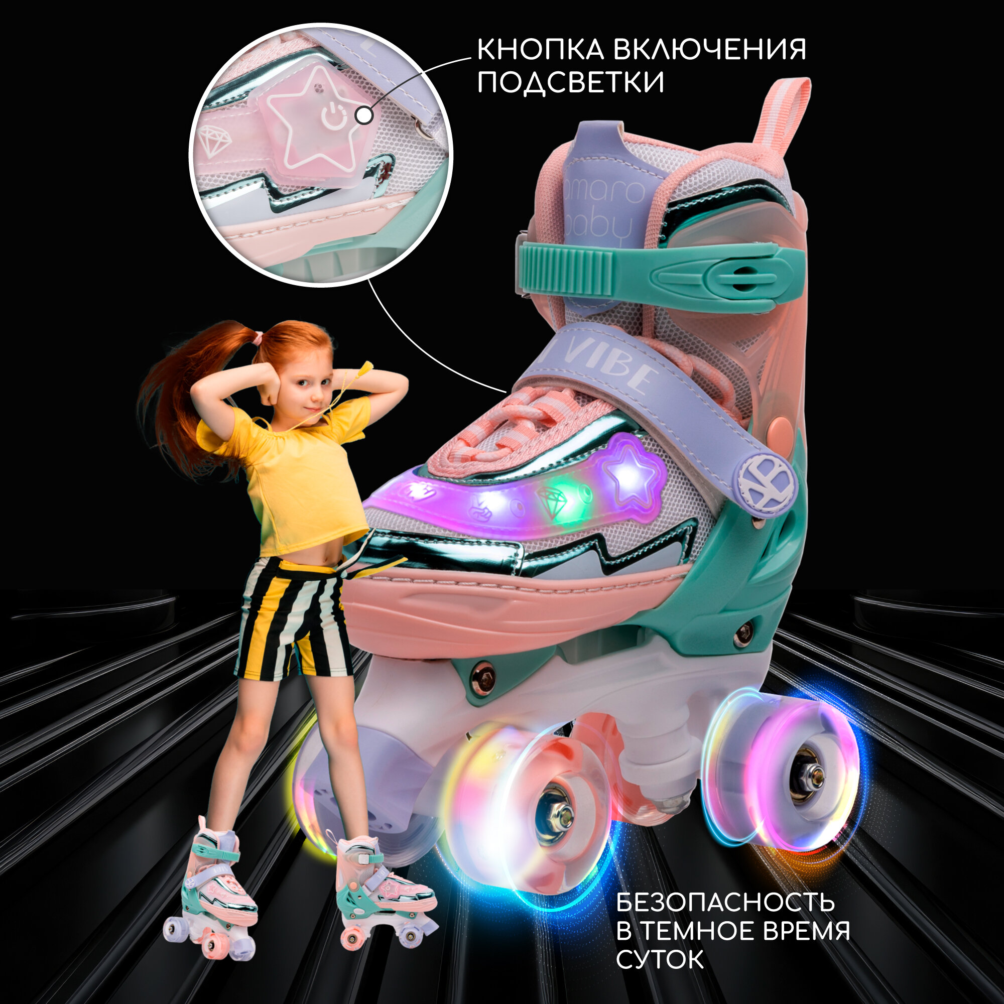 Отзывы на Ролики Amarobaby Glory раздвижные со светящимися колесами, бирюзовый/оранжевый, размер 26-29