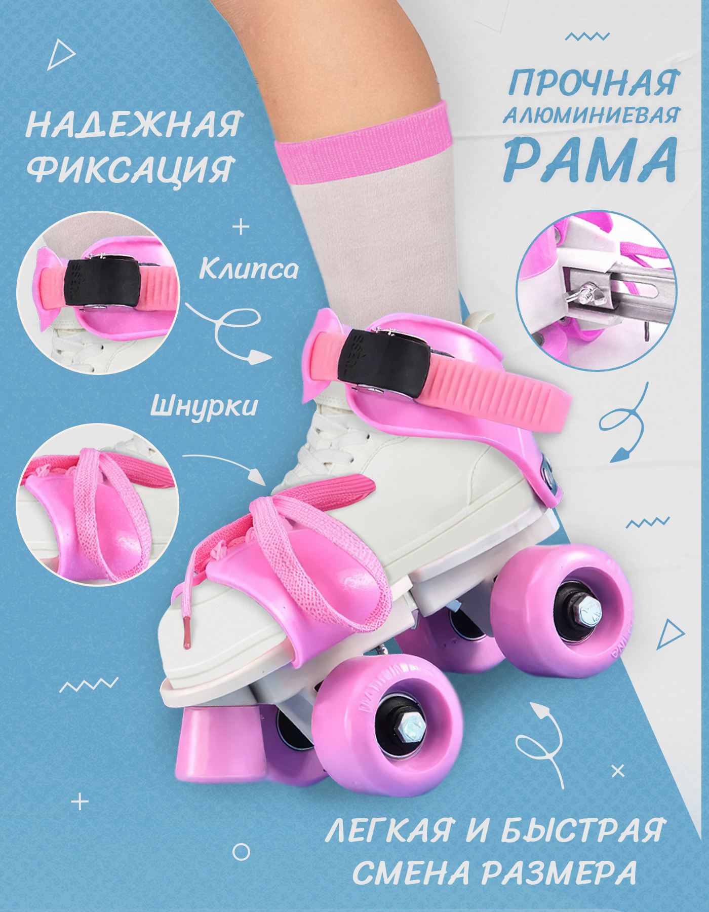 Раздвижные ролики квады на обувь Banwei Pink 18-23 см (28-35 размер) информация: