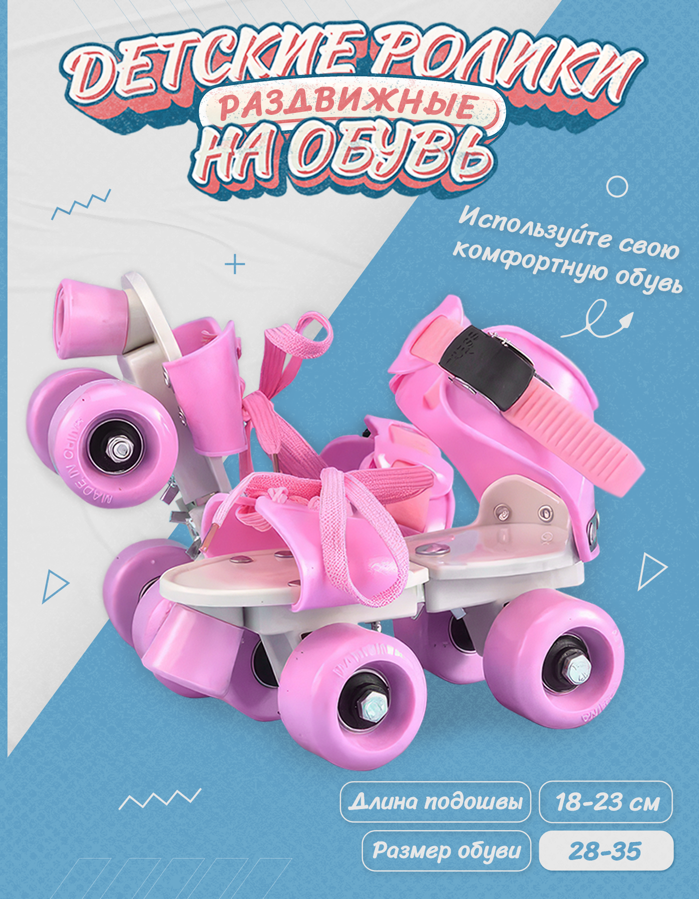Характиристики этого товара не найдены!Отзывы на Раздвижные ролики квады на обувь Banwei Pink 18-23 см (28-35 размер)