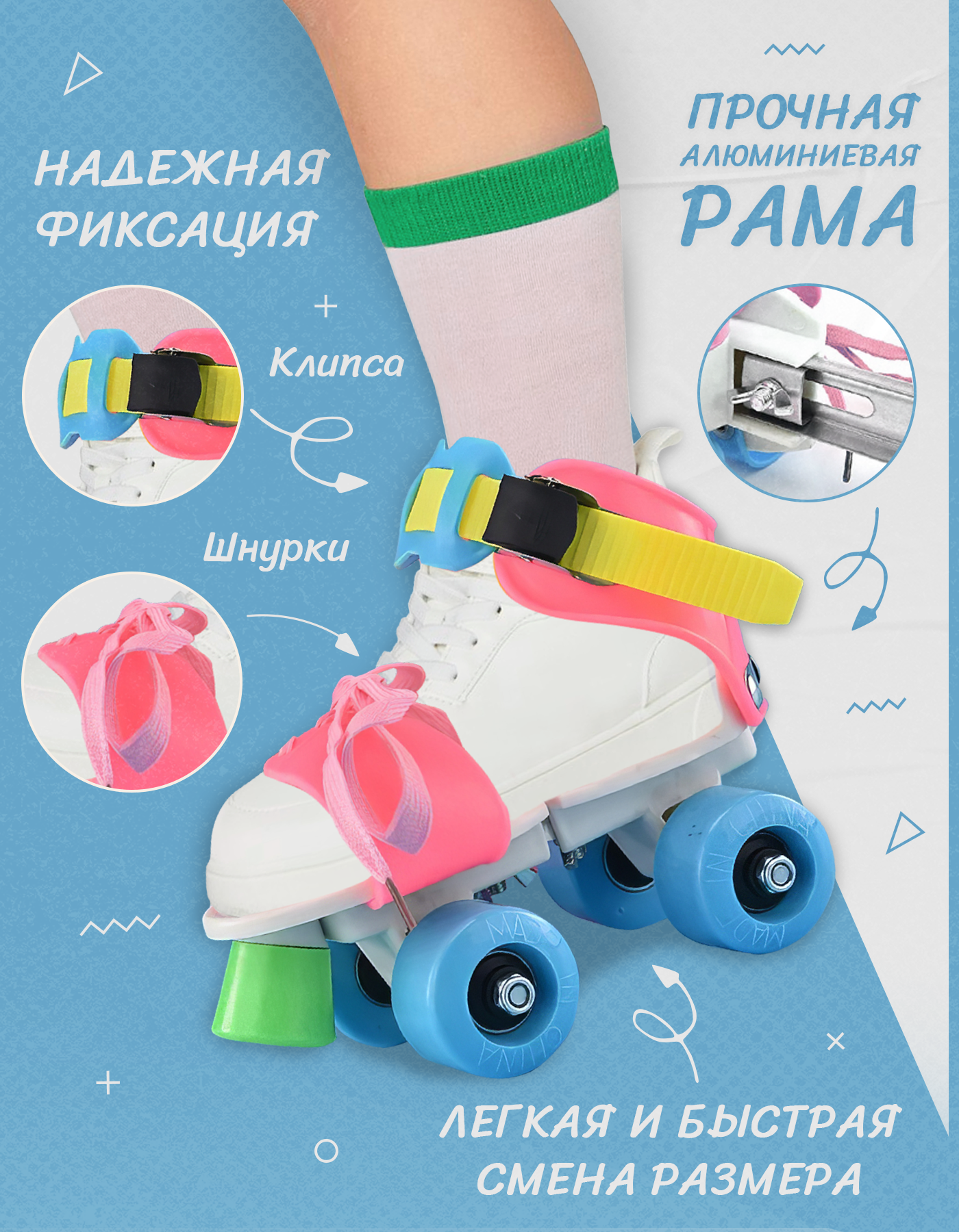 Раздвижные ролики квады на обувь Banwei Pink Blue 18-23 см (28-35 размер) информация: