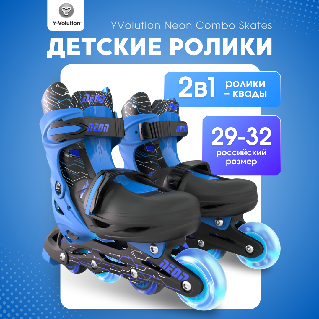 Роликовые коньки YVolution Neon Combo Skates, синий (размеры 29-32), раздвижные информация: