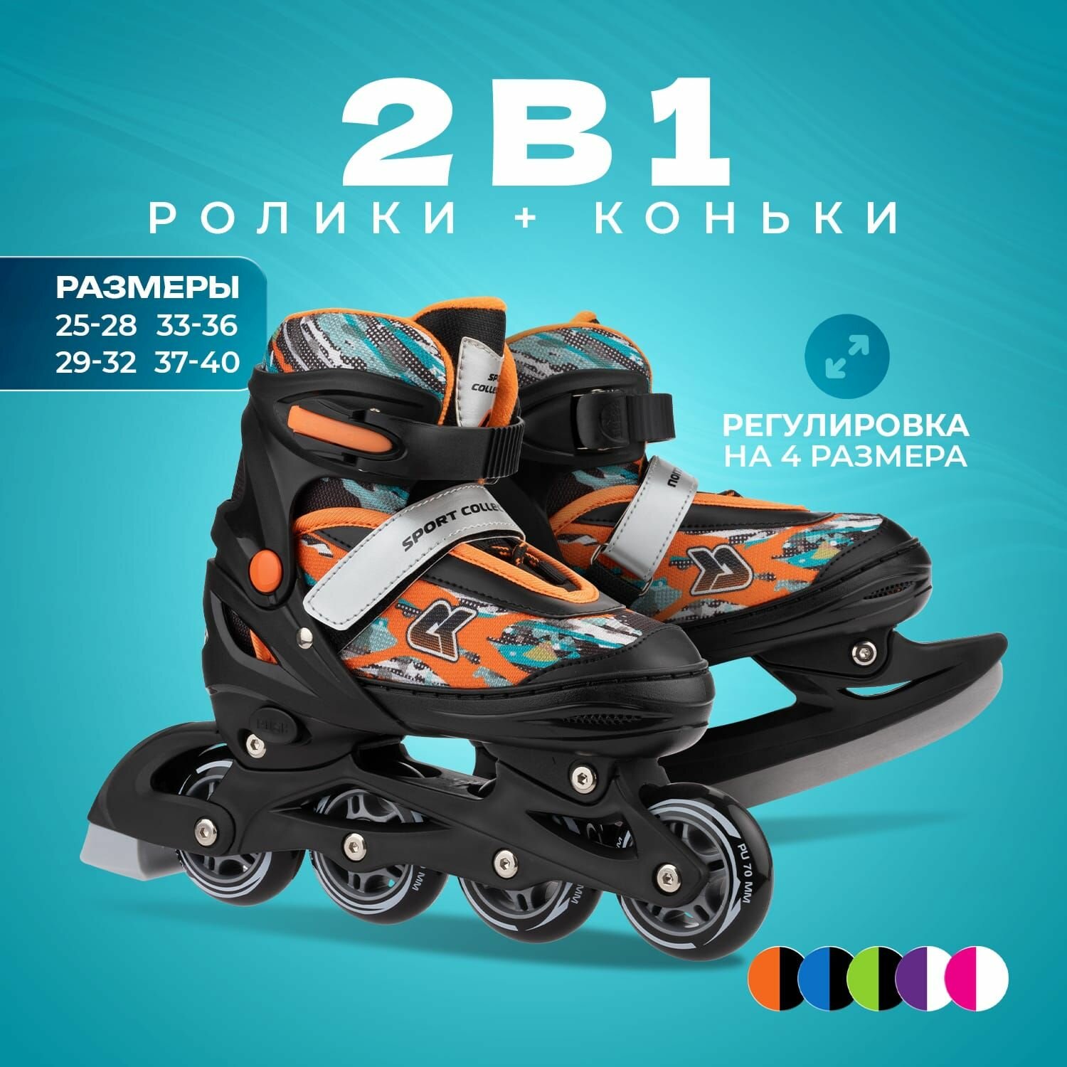 Отзывы на Раздвижные роликовые коньки трансформеры SPORT COLLECTION розовый со сменными лезвиями 29-32