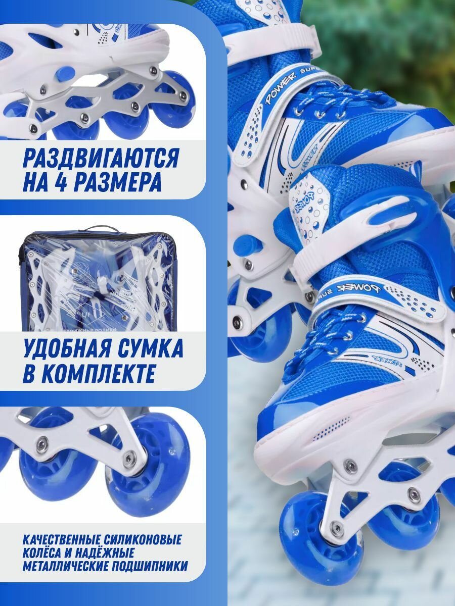 10 цен на Роликовые коньки детские раздвижные, светящиеся, размер 31-34 (S), (синий) 8804
